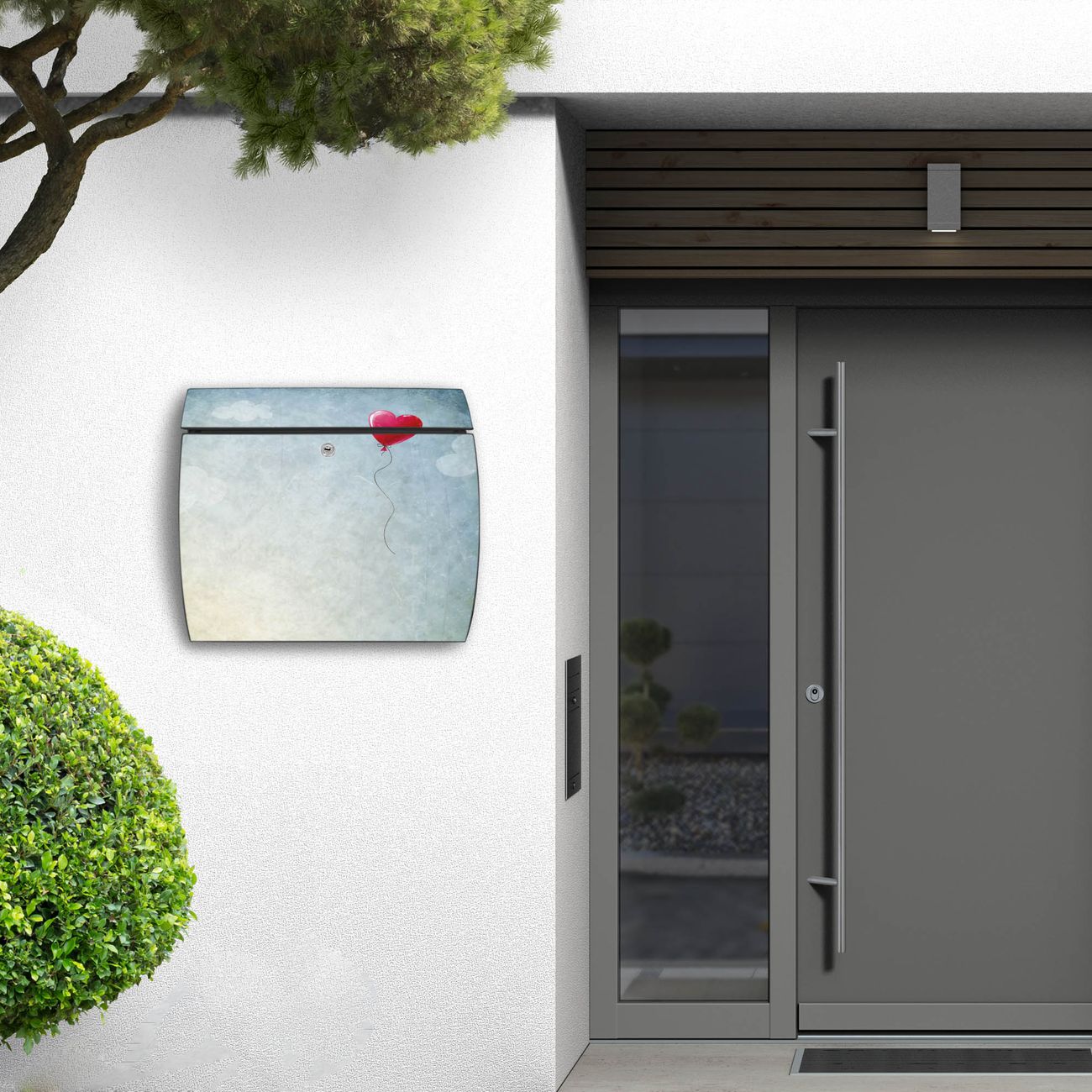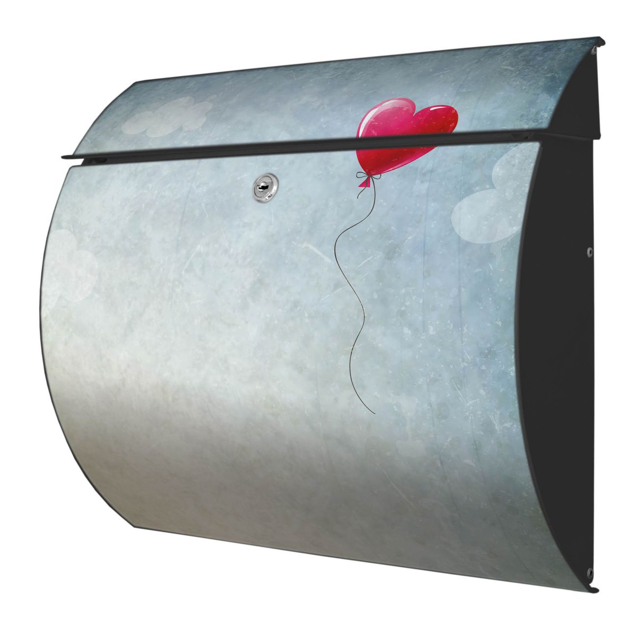 Der geschwungene Burg Wächter Briefkasten Toscana mit Motiv Herzballon bietet Ihnen mit seinem großen Fassungsvermögen genügend Platz auch für große A4 Sendungen. Auf Wunsch können Sie bei uns den passenden Standfuß bestellen und so aus dem Wandbriefkasten einen Standbriefkasten machen. Der integrierte Öffnungsstopp ermöglicht eine einfache Handhabung beim Entnehmen der Post.