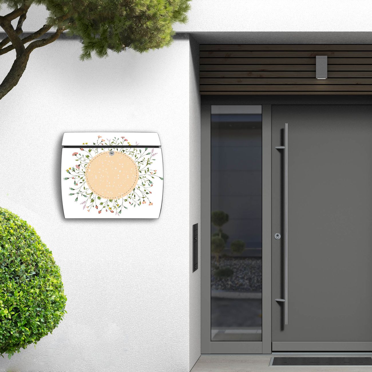 FUNKTION: DESIGN: Das Burg Wächter Modell Toscana mit Motiv Hibiskus Kreis hat ein sehr ansprechendes und zeitloses Design und ist besonderes wetterfest. Heben Sie Sich von der tristen grauen Masse ab, ohne auf Funktionalität zu verzichten. Wir bieten Ihnen ebenfalls Namensschilder, bereits beschriftet oder frei zu beschriften, und verschiedene selbst gestaltete Bitte-Keine-Werbung-Aufkleber. DETAILS: Der Postkasten besteht aus vollflächig verzinktem Stahl welcher in Anthrazit oder Weiß lackiert wurde oder aus Edelstahl (je nach gewählter Variante). Das Motiv besteht aus einer wetter- und UV-festen Folie, die mit einem Schutzlaminat überzogen ist, durch die Ihren Briefkasten zusätzlich vor Kratzern geschützt ist und auf den Briefkasten kaschiert wurde. Sie erhalten zu Ihrem neuen Design Briefkasten 2 Schlüssel sowie das passende Montagematerial. BANJADO: Ihr Briefkasten wird von Burg Wächter in Deutschland gefertigt und in unserer kleinen Manufaktur von Hand veredelt. Die Motivfolie ist lösungsmittelfrei und schutzlaminiert, dies sorgt für einen langen Halt. Wir legen großen Wert auf die Verbindung von Funktionalität und Design. Sie erhalten besondere Handarbeit aus Sachsen und Made in Germany.