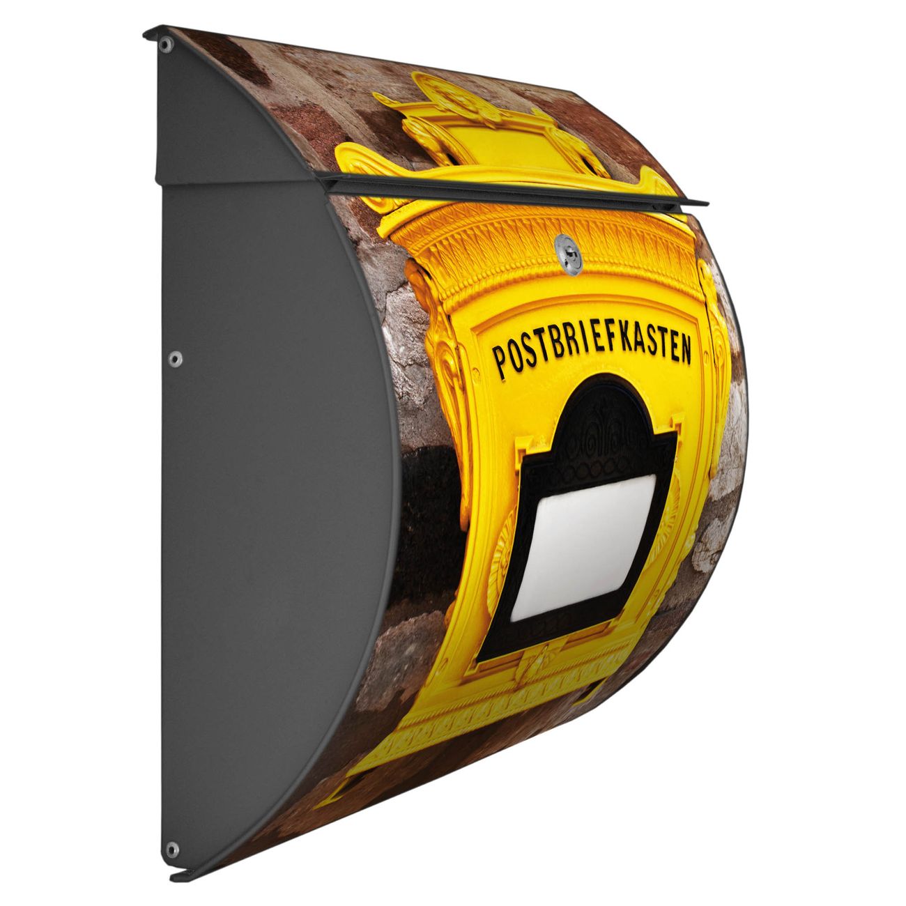 FUNKTION: DESIGN: Das Burg Wächter Modell Toscana mit Motiv Historischer Postkasten hat ein sehr ansprechendes und zeitloses Design und ist besonderes wetterfest. Heben Sie Sich von der tristen grauen Masse ab, ohne auf Funktionalität zu verzichten. Wir bieten Ihnen ebenfalls Namensschilder, bereits beschriftet oder frei zu beschriften, und verschiedene selbst gestaltete Bitte-Keine-Werbung-Aufkleber. DETAILS: Der Postkasten besteht aus vollflächig verzinktem Stahl welcher in Anthrazit oder Weiß lackiert wurde oder aus Edelstahl (je nach gewählter Variante). Das Motiv besteht aus einer wetter- und UV-festen Folie, die mit einem Schutzlaminat überzogen ist, durch die Ihren Briefkasten zusätzlich vor Kratzern geschützt ist und auf den Briefkasten kaschiert wurde. Sie erhalten zu Ihrem neuen Design Briefkasten 2 Schlüssel sowie das passende Montagematerial. BANJADO: Ihr Briefkasten wird von Burg Wächter in Deutschland gefertigt und in unserer kleinen Manufaktur von Hand veredelt. Die Motivfolie ist lösungsmittelfrei und schutzlaminiert, dies sorgt für einen langen Halt. Wir legen großen Wert auf die Verbindung von Funktionalität und Design. Sie erhalten besondere Handarbeit aus Sachsen und Made in Germany.