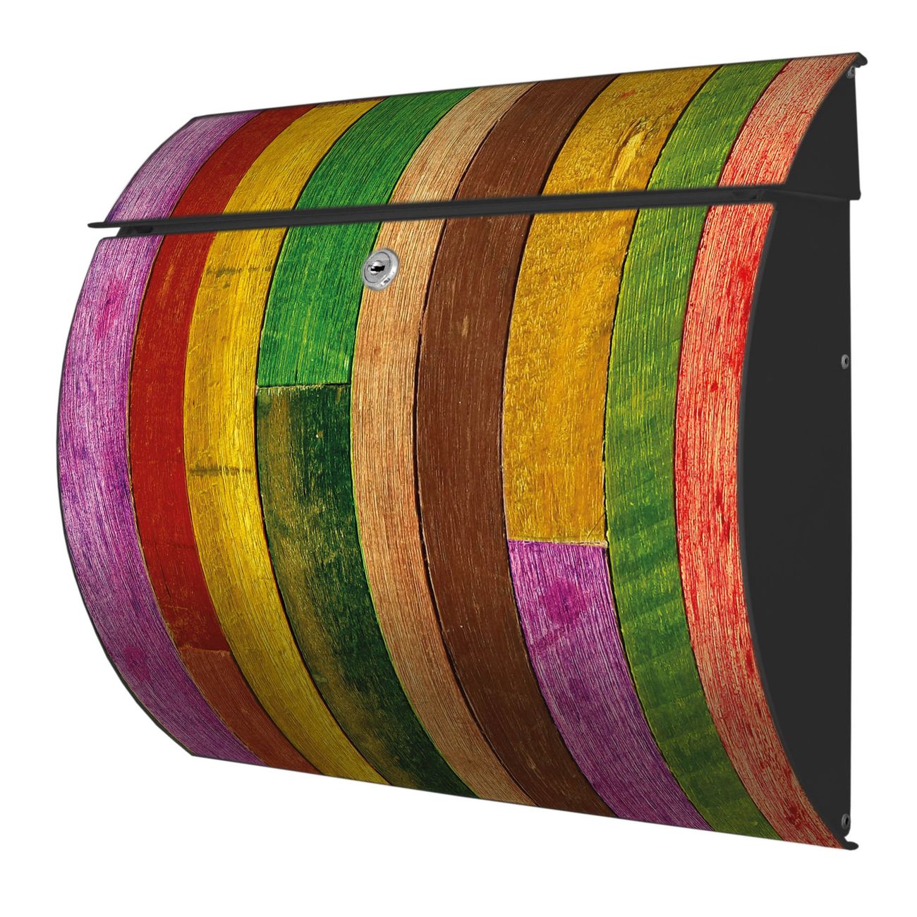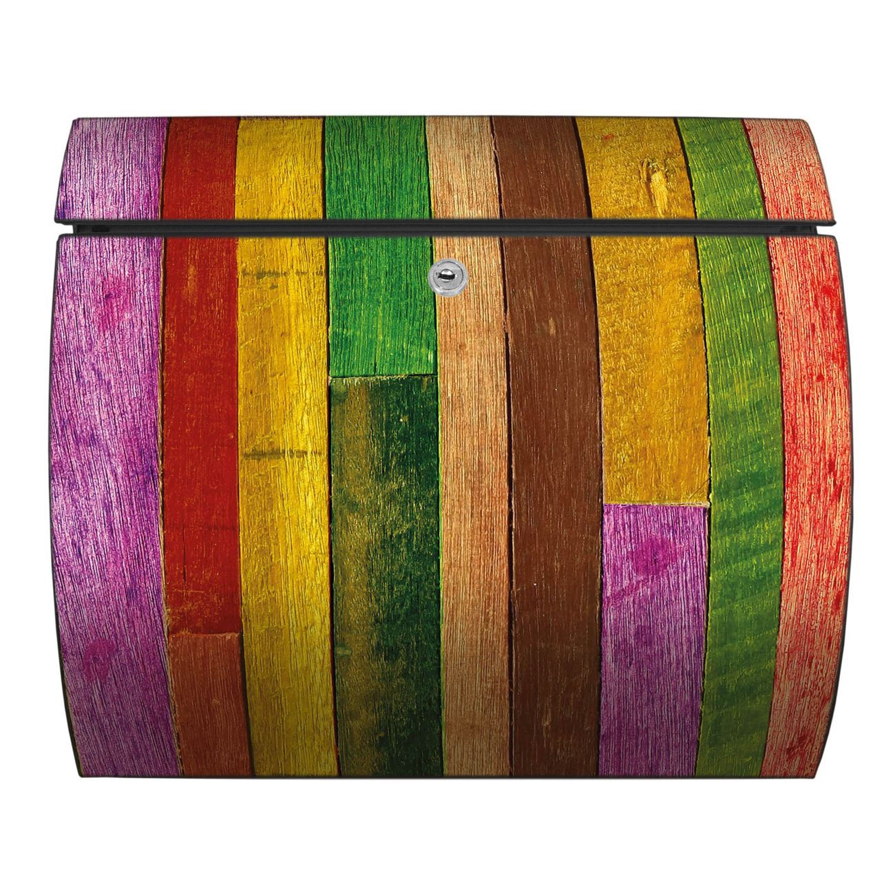 Der geschwungene Burg Wächter Briefkasten Toscana mit Motiv Holz Collage Bunt bietet Ihnen mit seinem großen Fassungsvermögen genügend Platz auch für große A4 Sendungen. Auf Wunsch können Sie bei uns den passenden Standfuß bestellen und so aus dem Wandbriefkasten einen Standbriefkasten machen. Der integrierte Öffnungsstopp ermöglicht eine einfache Handhabung beim Entnehmen der Post.