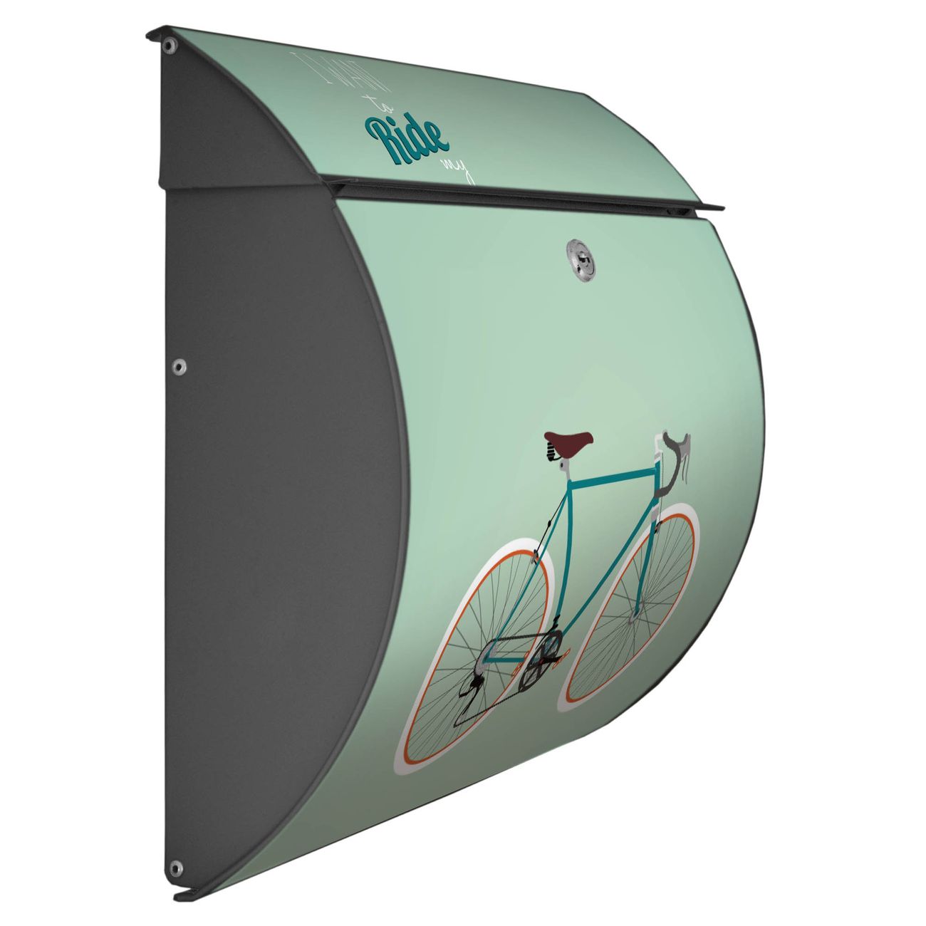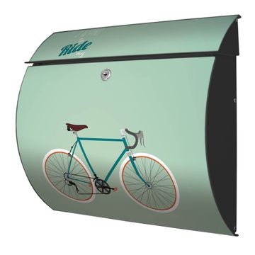 Der geschwungene Burg Wächter Briefkasten Toscana mit Motiv I want to ride my bike bietet Ihnen mit seinem großen Fassungsvermögen genügend Platz auch für große A4 Sendungen. Auf Wunsch können Sie bei uns den passenden Standfuß bestellen und so aus dem Wandbriefkasten einen Standbriefkasten machen. Der integrierte Öffnungsstopp ermöglicht eine einfache Handhabung beim Entnehmen der Post.