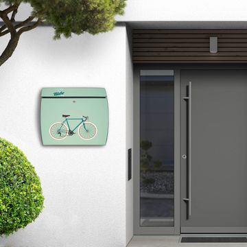 FUNKTION: DESIGN: Das Burg Wächter Modell Toscana mit Motiv I want to ride my bike hat ein sehr ansprechendes und zeitloses Design und ist besonderes wetterfest. Heben Sie Sich von der tristen grauen Masse ab, ohne auf Funktionalität zu verzichten. Wir bieten Ihnen ebenfalls Namensschilder, bereits beschriftet oder frei zu beschriften, und verschiedene selbst gestaltete Bitte-Keine-Werbung-Aufkleber. DETAILS: Der Postkasten besteht aus vollflächig verzinktem Stahl welcher in Anthrazit oder Weiß lackiert wurde oder aus Edelstahl (je nach gewählter Variante). Das Motiv besteht aus einer wetter- und UV-festen Folie, die mit einem Schutzlaminat überzogen ist, durch die Ihren Briefkasten zusätzlich vor Kratzern geschützt ist und auf den Briefkasten kaschiert wurde. Sie erhalten zu Ihrem neuen Design Briefkasten 2 Schlüssel sowie das passende Montagematerial. BANJADO: Ihr Briefkasten wird von Burg Wächter in Deutschland gefertigt und in unserer kleinen Manufaktur von Hand veredelt. Die Motivfolie ist lösungsmittelfrei und schutzlaminiert, dies sorgt für einen langen Halt. Wir legen großen Wert auf die Verbindung von Funktionalität und Design. Sie erhalten besondere Handarbeit aus Sachsen und Made in Germany.