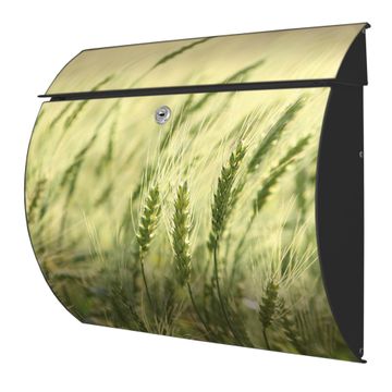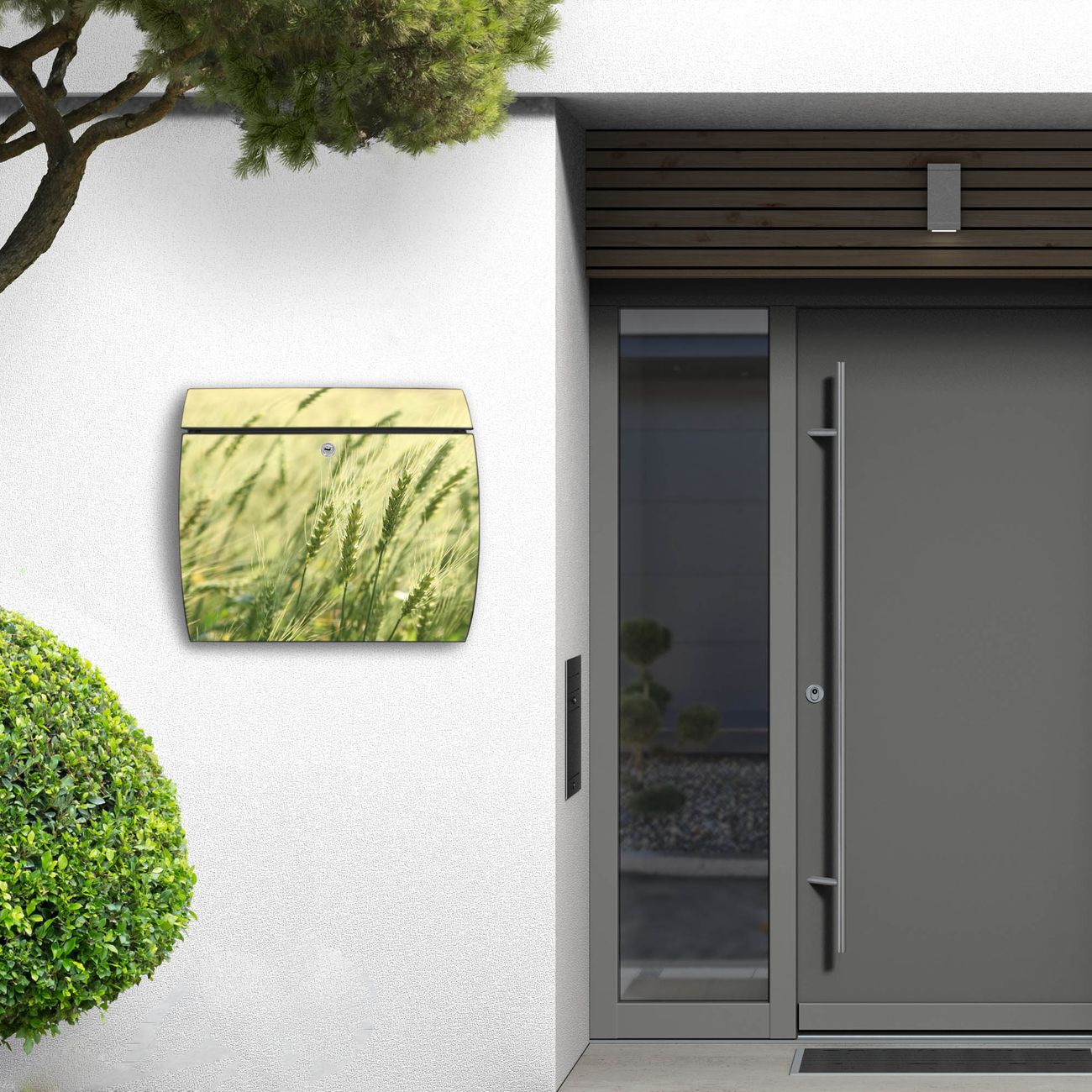 Der geschwungene Burg Wächter Briefkasten Toscana mit Motiv Junges Getreide bietet Ihnen mit seinem großen Fassungsvermögen genügend Platz auch für große A4 Sendungen. Auf Wunsch können Sie bei uns den passenden Standfuß bestellen und so aus dem Wandbriefkasten einen Standbriefkasten machen. Der integrierte Öffnungsstopp ermöglicht eine einfache Handhabung beim Entnehmen der Post.