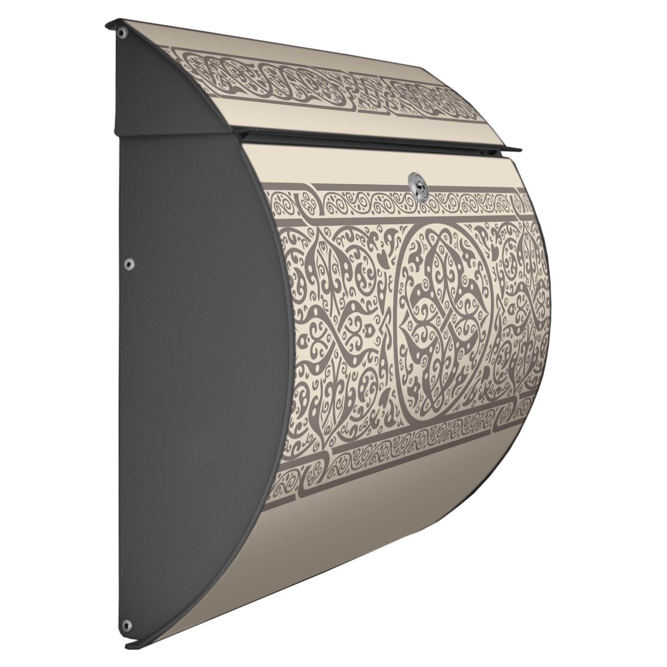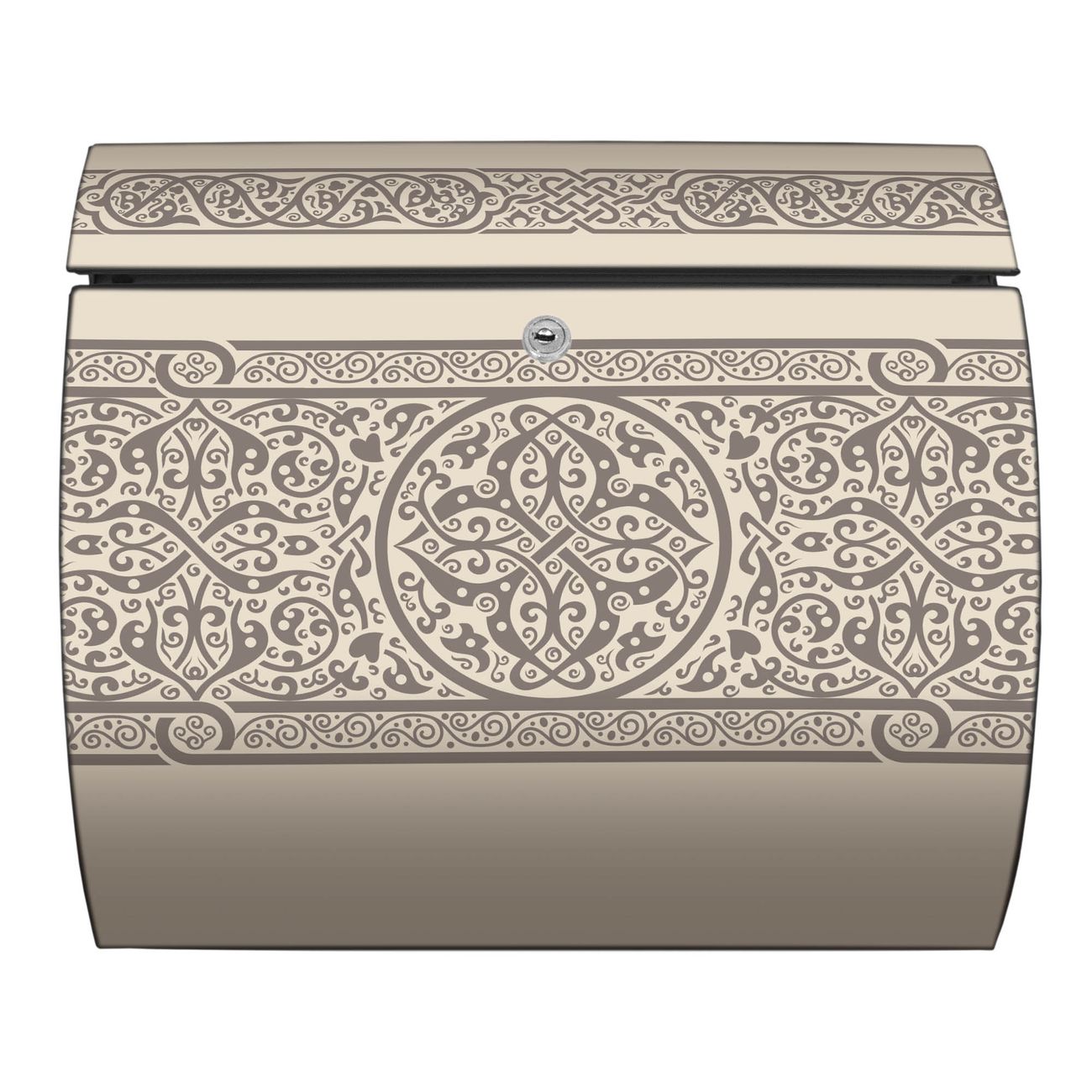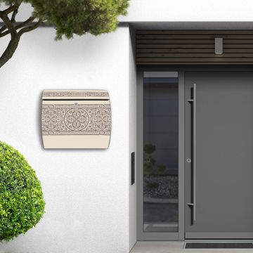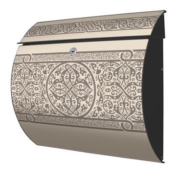 Der geschwungene Burg Wächter Briefkasten Toscana mit Motiv Keltischer Knoten bietet Ihnen mit seinem großen Fassungsvermögen genügend Platz auch für große A4 Sendungen. Auf Wunsch können Sie bei uns den passenden Standfuß bestellen und so aus dem Wandbriefkasten einen Standbriefkasten machen. Der integrierte Öffnungsstopp ermöglicht eine einfache Handhabung beim Entnehmen der Post.
