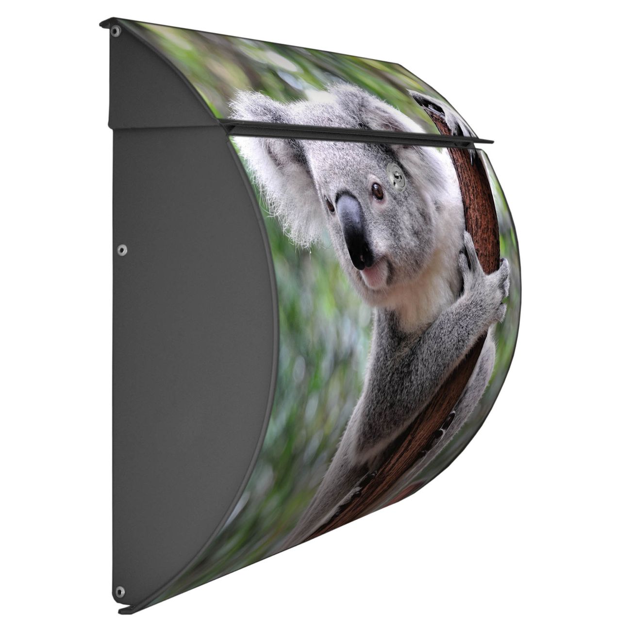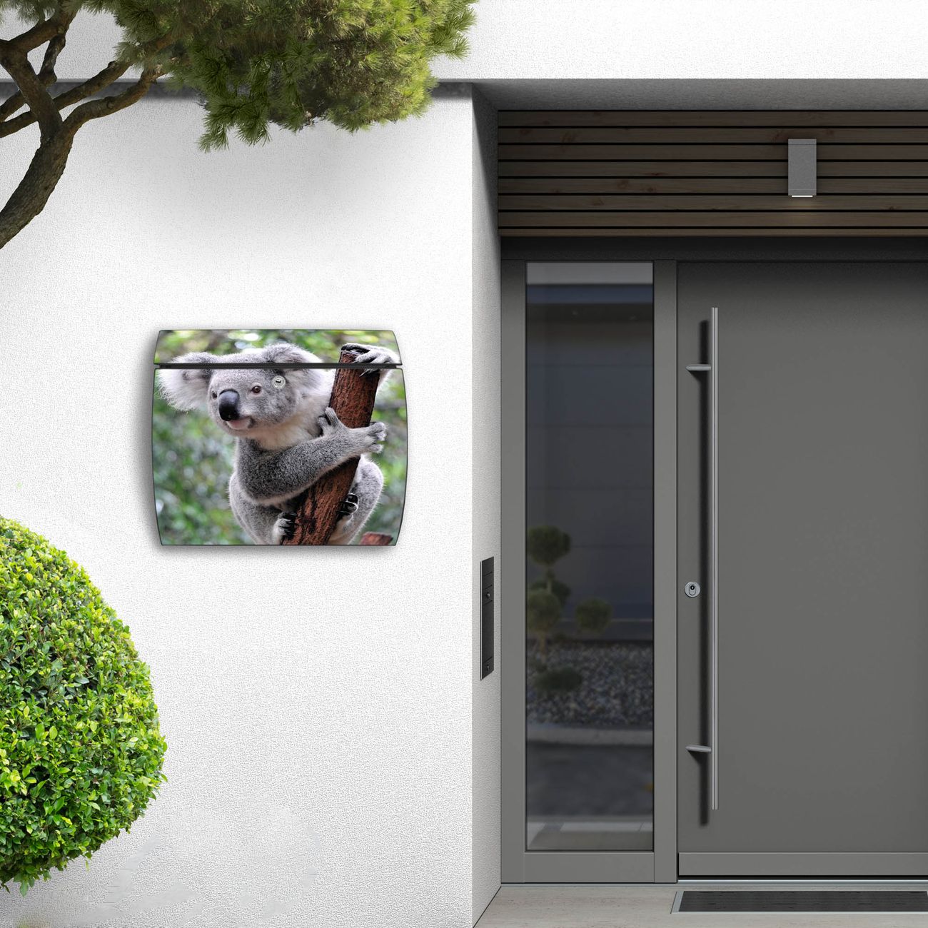 Der geschwungene Burg Wächter Briefkasten Toscana mit Motiv Koala bietet Ihnen mit seinem großen Fassungsvermögen genügend Platz auch für große A4 Sendungen. Auf Wunsch können Sie bei uns den passenden Standfuß bestellen und so aus dem Wandbriefkasten einen Standbriefkasten machen. Der integrierte Öffnungsstopp ermöglicht eine einfache Handhabung beim Entnehmen der Post.