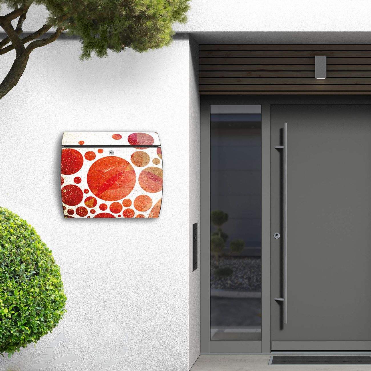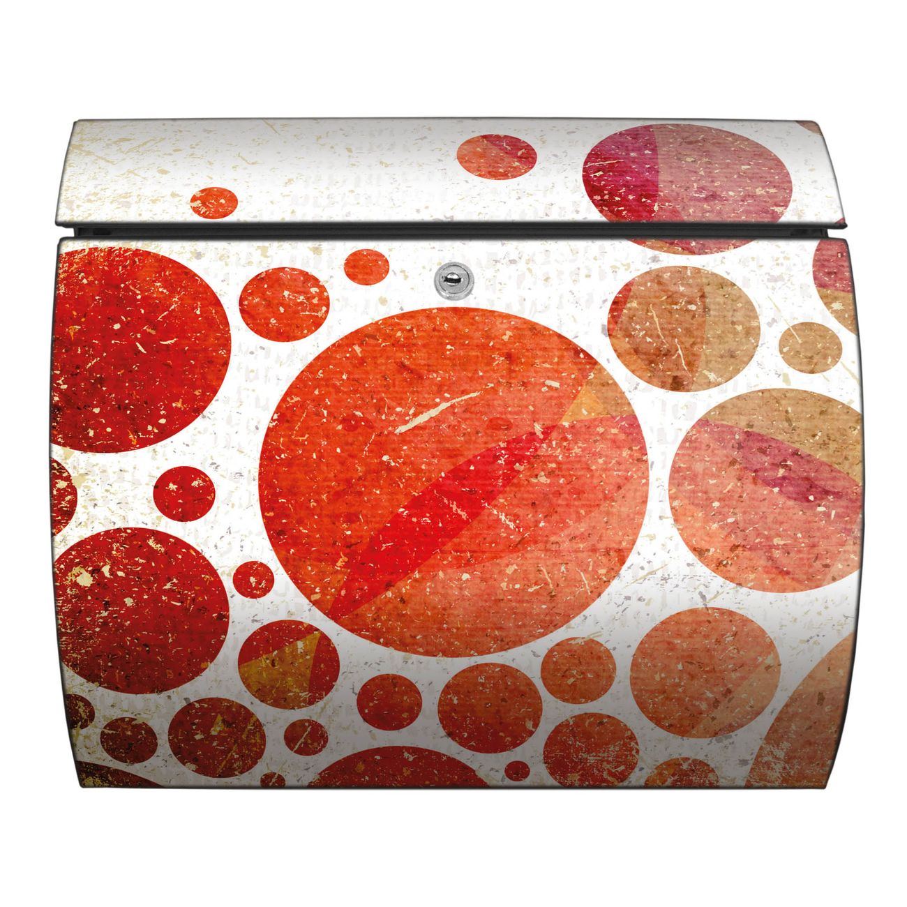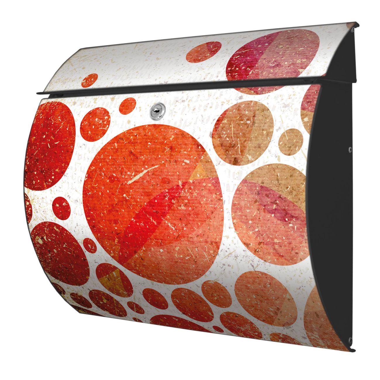 FUNKTION: DESIGN: Das Burg Wächter Modell Toscana mit Motiv Kreise hat ein sehr ansprechendes und zeitloses Design und ist besonderes wetterfest. Heben Sie Sich von der tristen grauen Masse ab, ohne auf Funktionalität zu verzichten. Wir bieten Ihnen ebenfalls Namensschilder, bereits beschriftet oder frei zu beschriften, und verschiedene selbst gestaltete Bitte-Keine-Werbung-Aufkleber. DETAILS: Der Postkasten besteht aus vollflächig verzinktem Stahl welcher in Anthrazit oder Weiß lackiert wurde oder aus Edelstahl (je nach gewählter Variante). Das Motiv besteht aus einer wetter- und UV-festen Folie, die mit einem Schutzlaminat überzogen ist, durch die Ihren Briefkasten zusätzlich vor Kratzern geschützt ist und auf den Briefkasten kaschiert wurde. Sie erhalten zu Ihrem neuen Design Briefkasten 2 Schlüssel sowie das passende Montagematerial. BANJADO: Ihr Briefkasten wird von Burg Wächter in Deutschland gefertigt und in unserer kleinen Manufaktur von Hand veredelt. Die Motivfolie ist lösungsmittelfrei und schutzlaminiert, dies sorgt für einen langen Halt. Wir legen großen Wert auf die Verbindung von Funktionalität und Design. Sie erhalten besondere Handarbeit aus Sachsen und Made in Germany.
