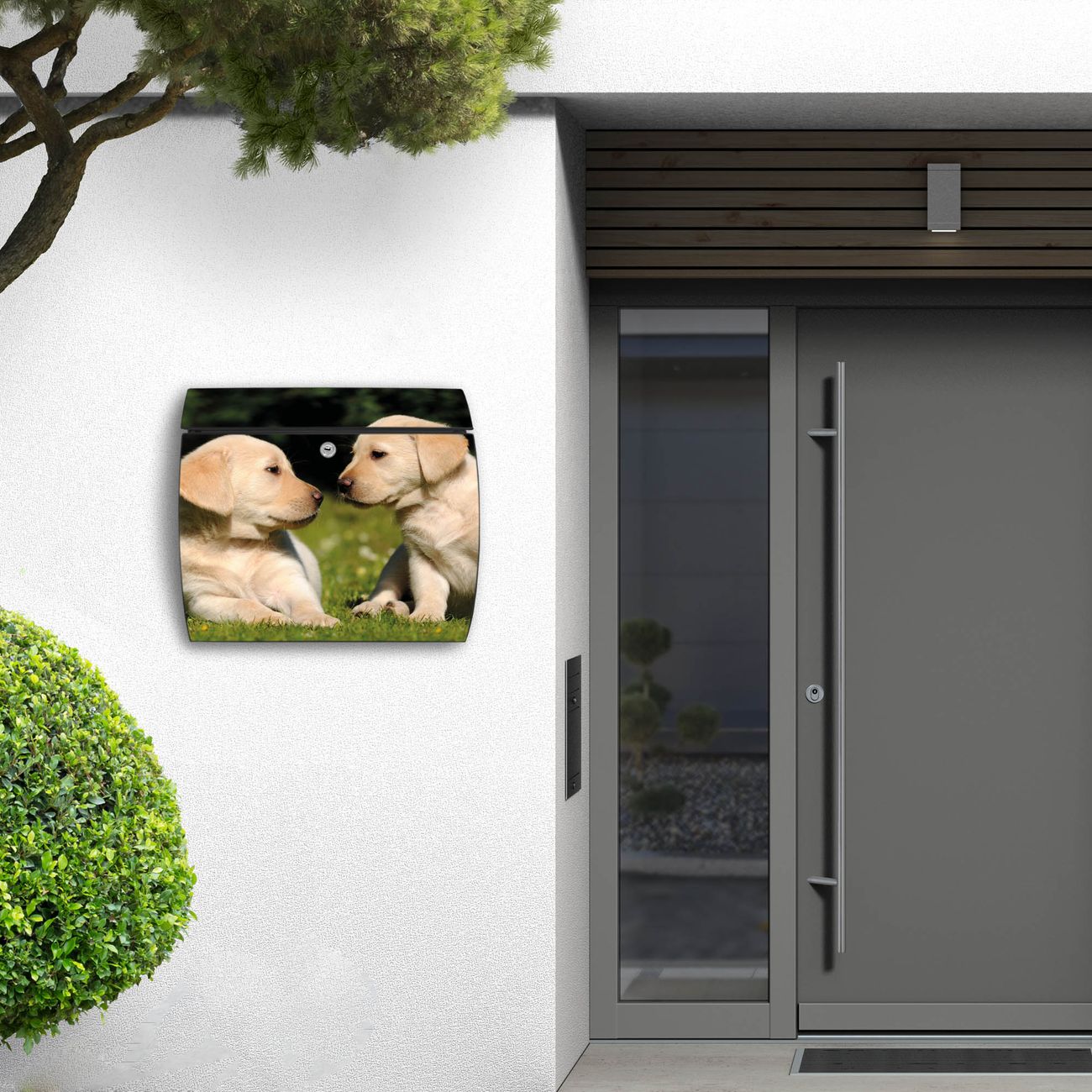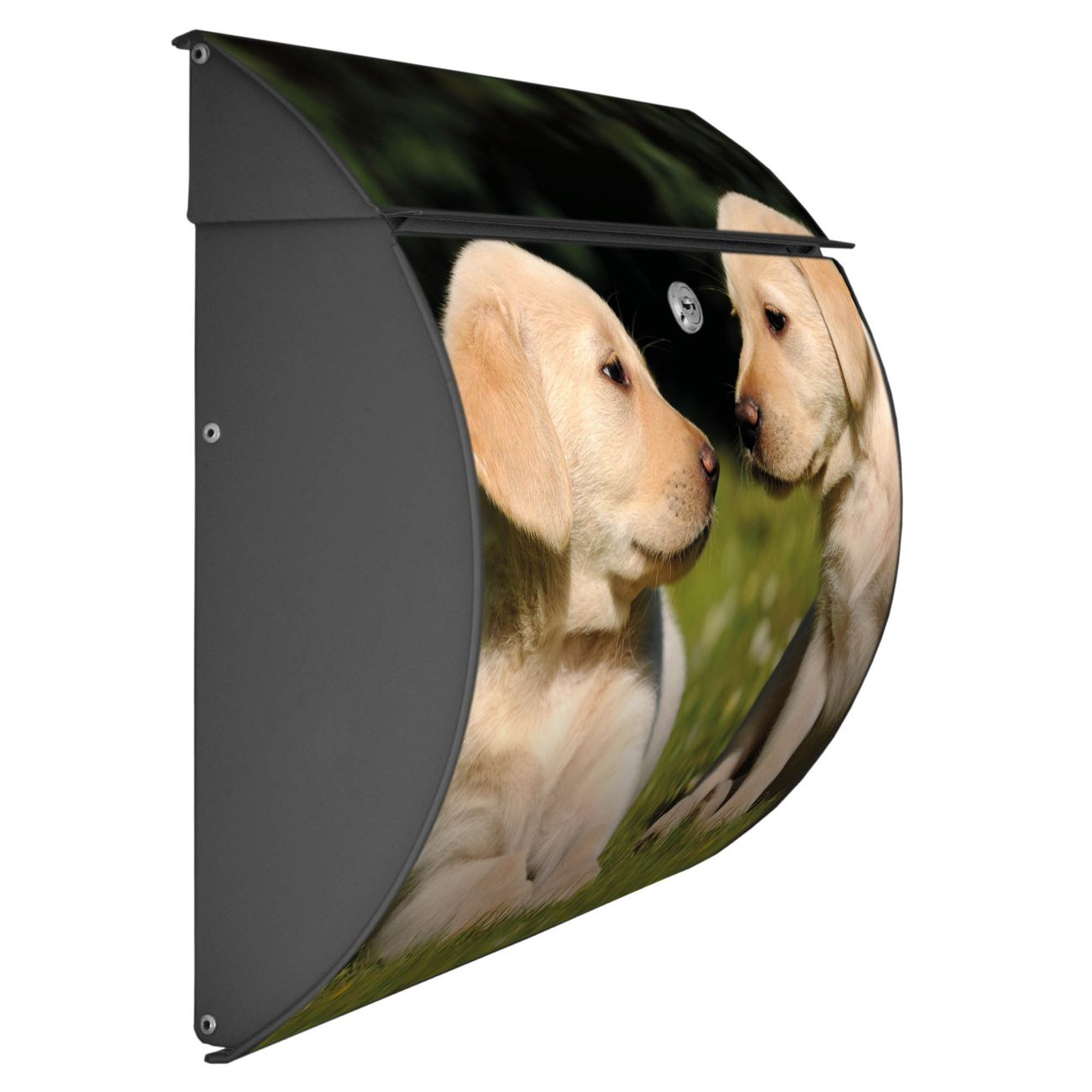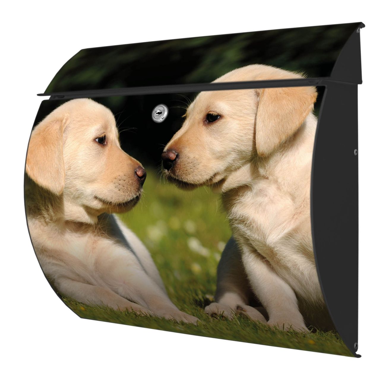 FUNKTION: DESIGN: Das Burg Wächter Modell Toscana mit Motiv Labrador hat ein sehr ansprechendes und zeitloses Design und ist besonderes wetterfest. Heben Sie Sich von der tristen grauen Masse ab, ohne auf Funktionalität zu verzichten. Wir bieten Ihnen ebenfalls Namensschilder, bereits beschriftet oder frei zu beschriften, und verschiedene selbst gestaltete Bitte-Keine-Werbung-Aufkleber. DETAILS: Der Postkasten besteht aus vollflächig verzinktem Stahl welcher in Anthrazit oder Weiß lackiert wurde oder aus Edelstahl (je nach gewählter Variante). Das Motiv besteht aus einer wetter- und UV-festen Folie, die mit einem Schutzlaminat überzogen ist, durch die Ihren Briefkasten zusätzlich vor Kratzern geschützt ist und auf den Briefkasten kaschiert wurde. Sie erhalten zu Ihrem neuen Design Briefkasten 2 Schlüssel sowie das passende Montagematerial. BANJADO: Ihr Briefkasten wird von Burg Wächter in Deutschland gefertigt und in unserer kleinen Manufaktur von Hand veredelt. Die Motivfolie ist lösungsmittelfrei und schutzlaminiert, dies sorgt für einen langen Halt. Wir legen großen Wert auf die Verbindung von Funktionalität und Design. Sie erhalten besondere Handarbeit aus Sachsen und Made in Germany.