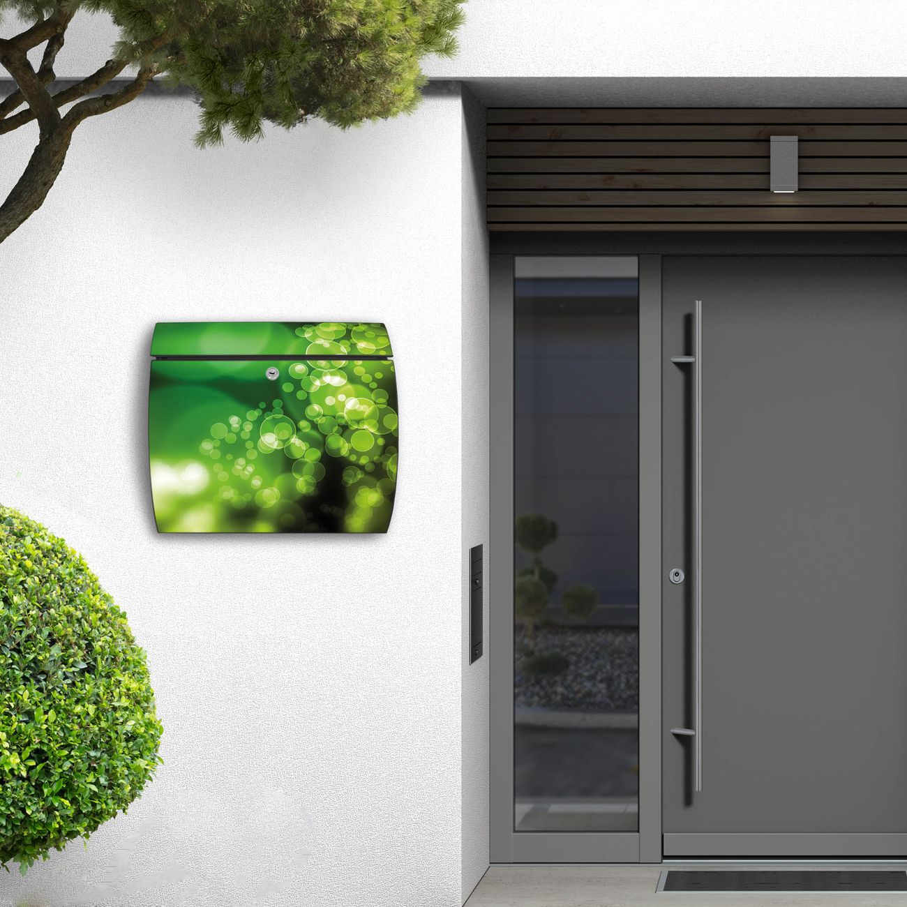 FUNKTION: DESIGN: Das Burg Wächter Modell Toscana mit Motiv Lichtspiel hat ein sehr ansprechendes und zeitloses Design und ist besonderes wetterfest. Heben Sie Sich von der tristen grauen Masse ab, ohne auf Funktionalität zu verzichten. Wir bieten Ihnen ebenfalls Namensschilder, bereits beschriftet oder frei zu beschriften, und verschiedene selbst gestaltete Bitte-Keine-Werbung-Aufkleber. DETAILS: Der Postkasten besteht aus vollflächig verzinktem Stahl welcher in Anthrazit oder Weiß lackiert wurde oder aus Edelstahl (je nach gewählter Variante). Das Motiv besteht aus einer wetter- und UV-festen Folie, die mit einem Schutzlaminat überzogen ist, durch die Ihren Briefkasten zusätzlich vor Kratzern geschützt ist und auf den Briefkasten kaschiert wurde. Sie erhalten zu Ihrem neuen Design Briefkasten 2 Schlüssel sowie das passende Montagematerial. BANJADO: Ihr Briefkasten wird von Burg Wächter in Deutschland gefertigt und in unserer kleinen Manufaktur von Hand veredelt. Die Motivfolie ist lösungsmittelfrei und schutzlaminiert, dies sorgt für einen langen Halt. Wir legen großen Wert auf die Verbindung von Funktionalität und Design. Sie erhalten besondere Handarbeit aus Sachsen und Made in Germany.