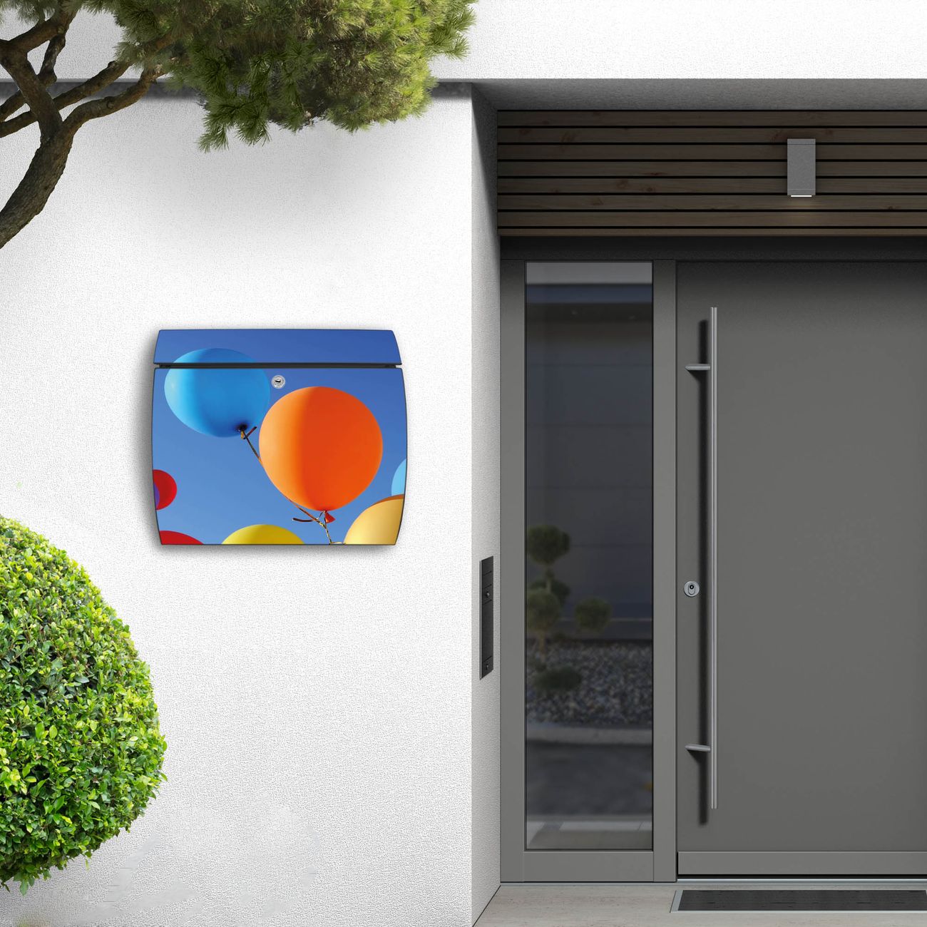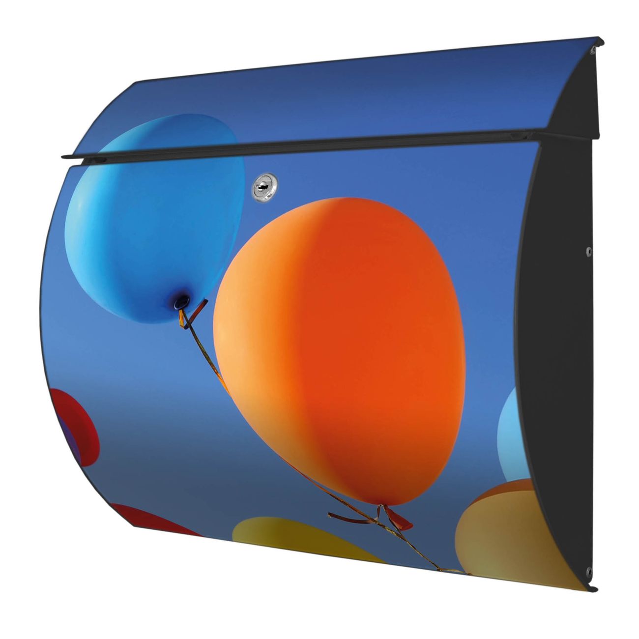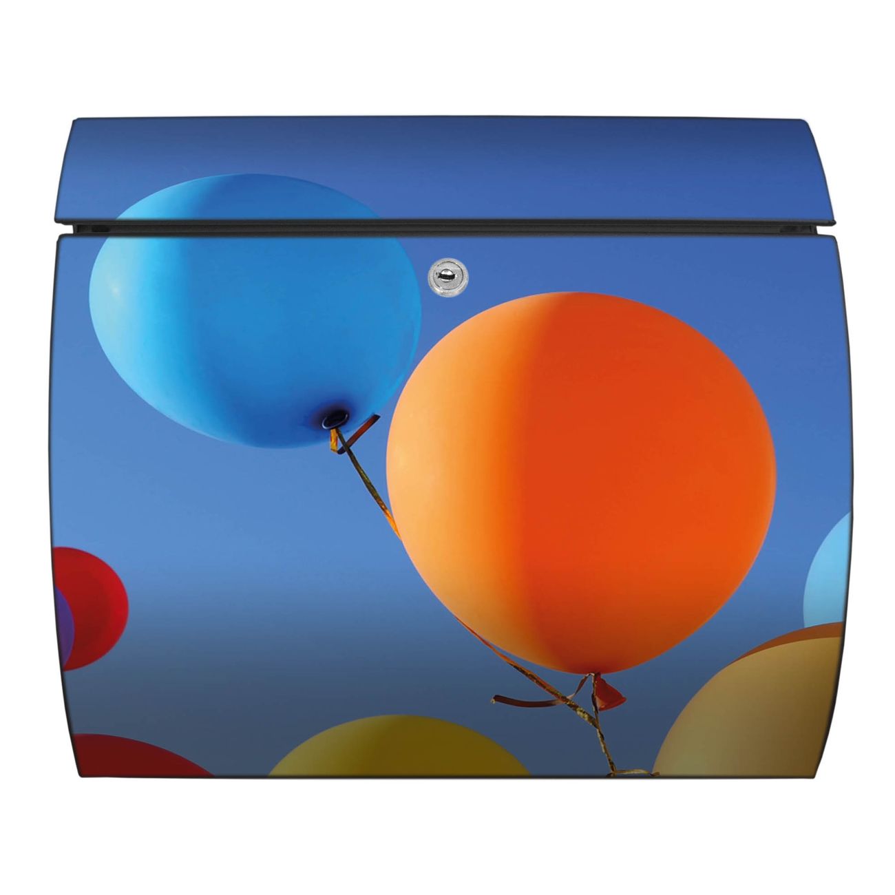 Der geschwungene Burg Wächter Briefkasten Toscana mit Motiv Luftballons bietet Ihnen mit seinem großen Fassungsvermögen genügend Platz auch für große A4 Sendungen. Auf Wunsch können Sie bei uns den passenden Standfuß bestellen und so aus dem Wandbriefkasten einen Standbriefkasten machen. Der integrierte Öffnungsstopp ermöglicht eine einfache Handhabung beim Entnehmen der Post.