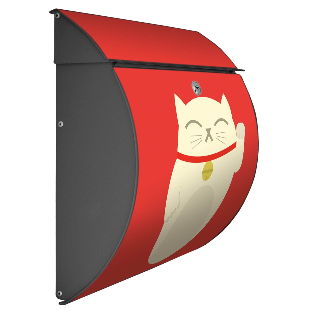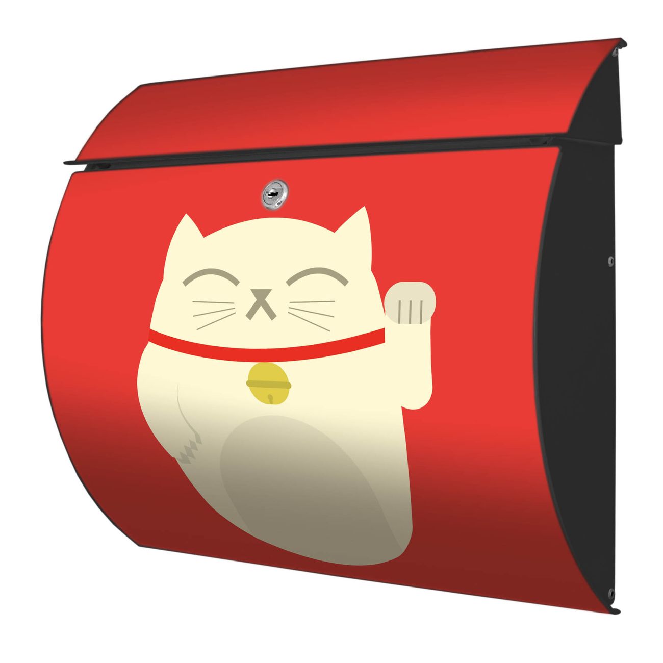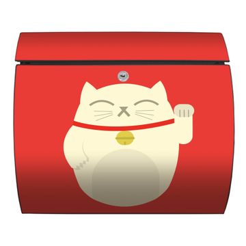 Der geschwungene Burg Wächter Briefkasten Toscana mit Motiv Manekineko bietet Ihnen mit seinem großen Fassungsvermögen genügend Platz auch für große A4 Sendungen. Auf Wunsch können Sie bei uns den passenden Standfuß bestellen und so aus dem Wandbriefkasten einen Standbriefkasten machen. Der integrierte Öffnungsstopp ermöglicht eine einfache Handhabung beim Entnehmen der Post.