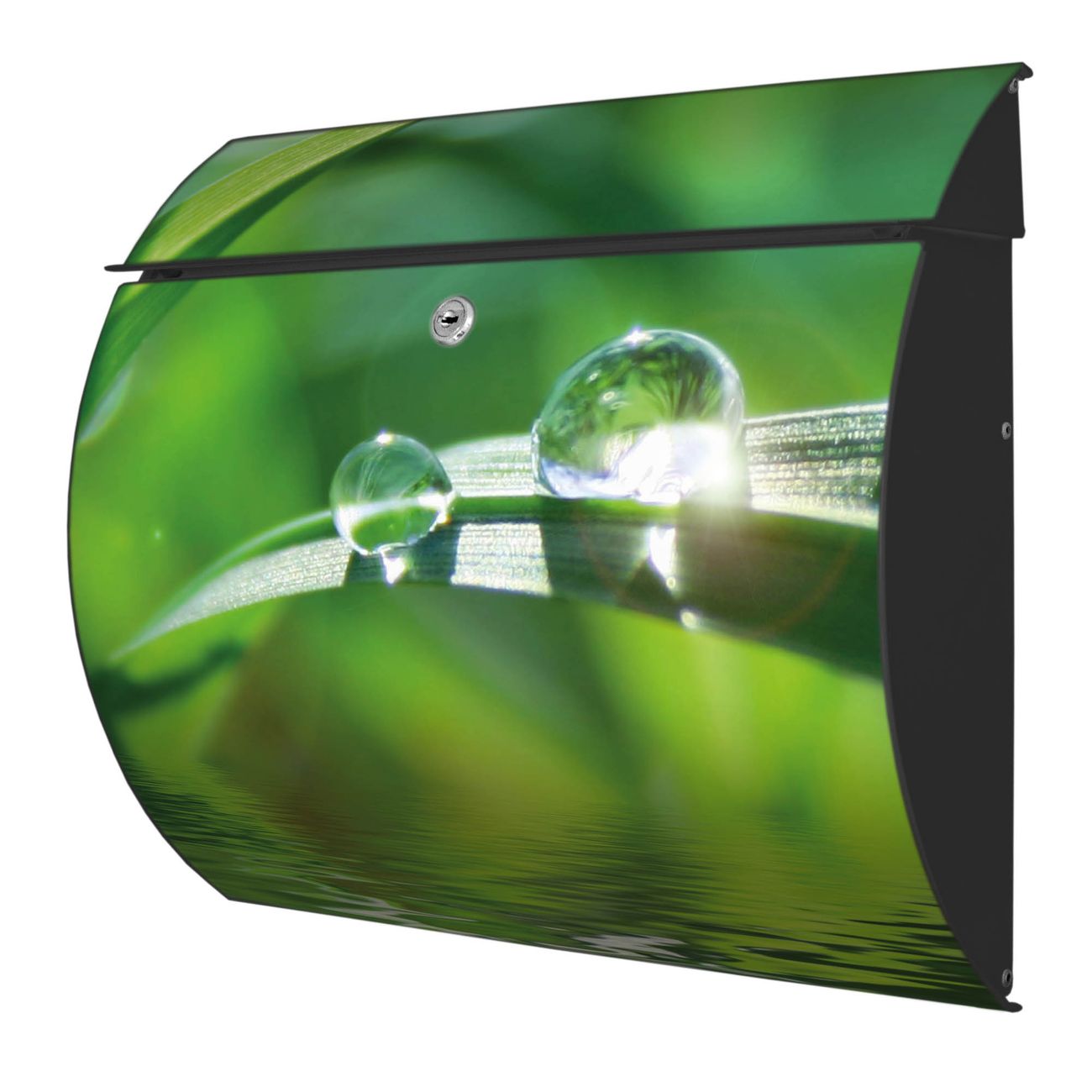 FUNKTION: DESIGN: Das Burg Wächter Modell Toscana mit Motiv Morgentau hat ein sehr ansprechendes und zeitloses Design und ist besonderes wetterfest. Heben Sie Sich von der tristen grauen Masse ab, ohne auf Funktionalität zu verzichten. Wir bieten Ihnen ebenfalls Namensschilder, bereits beschriftet oder frei zu beschriften, und verschiedene selbst gestaltete Bitte-Keine-Werbung-Aufkleber. DETAILS: Der Postkasten besteht aus vollflächig verzinktem Stahl welcher in Anthrazit oder Weiß lackiert wurde oder aus Edelstahl (je nach gewählter Variante). Das Motiv besteht aus einer wetter- und UV-festen Folie, die mit einem Schutzlaminat überzogen ist, durch die Ihren Briefkasten zusätzlich vor Kratzern geschützt ist und auf den Briefkasten kaschiert wurde. Sie erhalten zu Ihrem neuen Design Briefkasten 2 Schlüssel sowie das passende Montagematerial. BANJADO: Ihr Briefkasten wird von Burg Wächter in Deutschland gefertigt und in unserer kleinen Manufaktur von Hand veredelt. Die Motivfolie ist lösungsmittelfrei und schutzlaminiert, dies sorgt für einen langen Halt. Wir legen großen Wert auf die Verbindung von Funktionalität und Design. Sie erhalten besondere Handarbeit aus Sachsen und Made in Germany.