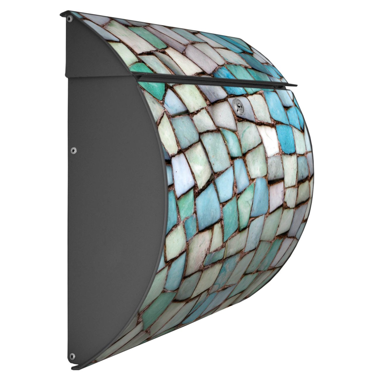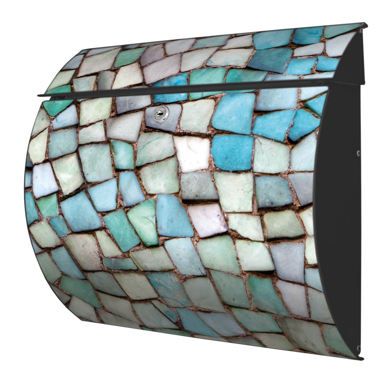 Der geschwungene Burg Wächter Briefkasten Toscana mit Motiv Mosaik Blau bietet Ihnen mit seinem großen Fassungsvermögen genügend Platz auch für große A4 Sendungen. Auf Wunsch können Sie bei uns den passenden Standfuß bestellen und so aus dem Wandbriefkasten einen Standbriefkasten machen. Der integrierte Öffnungsstopp ermöglicht eine einfache Handhabung beim Entnehmen der Post.