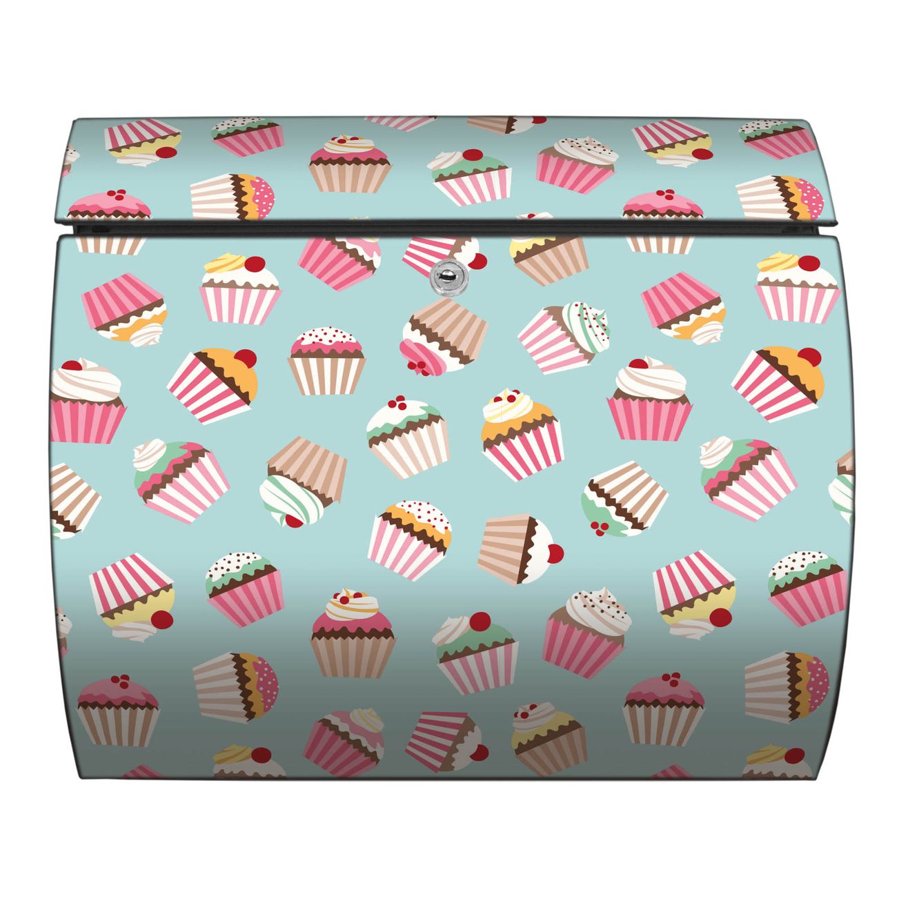 Der geschwungene Burg Wächter Briefkasten Toscana mit Motiv Muffins bietet Ihnen mit seinem großen Fassungsvermögen genügend Platz auch für große A4 Sendungen. Auf Wunsch können Sie bei uns den passenden Standfuß bestellen und so aus dem Wandbriefkasten einen Standbriefkasten machen. Der integrierte Öffnungsstopp ermöglicht eine einfache Handhabung beim Entnehmen der Post.