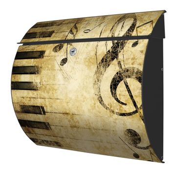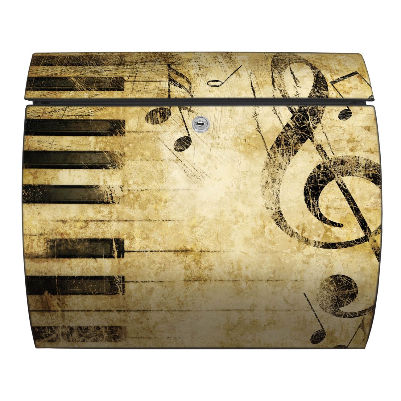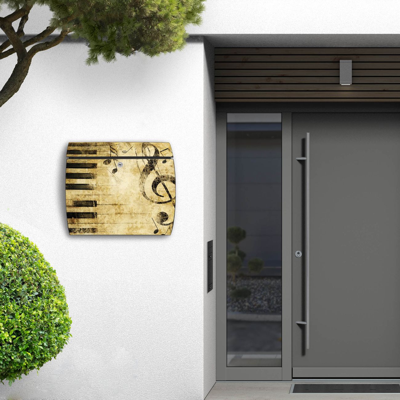 Der geschwungene Burg Wächter Briefkasten Toscana mit Motiv Music bietet Ihnen mit seinem großen Fassungsvermögen genügend Platz auch für große A4 Sendungen. Auf Wunsch können Sie bei uns den passenden Standfuß bestellen und so aus dem Wandbriefkasten einen Standbriefkasten machen. Der integrierte Öffnungsstopp ermöglicht eine einfache Handhabung beim Entnehmen der Post.