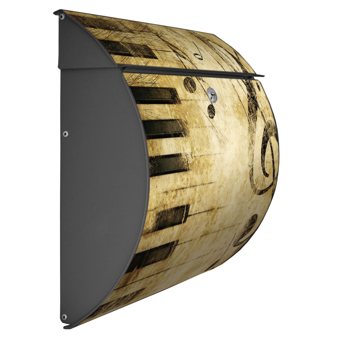 FUNKTION: DESIGN: Das Burg Wächter Modell Toscana mit Motiv Music hat ein sehr ansprechendes und zeitloses Design und ist besonderes wetterfest. Heben Sie Sich von der tristen grauen Masse ab, ohne auf Funktionalität zu verzichten. Wir bieten Ihnen ebenfalls Namensschilder, bereits beschriftet oder frei zu beschriften, und verschiedene selbst gestaltete Bitte-Keine-Werbung-Aufkleber. DETAILS: Der Postkasten besteht aus vollflächig verzinktem Stahl welcher in Anthrazit oder Weiß lackiert wurde oder aus Edelstahl (je nach gewählter Variante). Das Motiv besteht aus einer wetter- und UV-festen Folie, die mit einem Schutzlaminat überzogen ist, durch die Ihren Briefkasten zusätzlich vor Kratzern geschützt ist und auf den Briefkasten kaschiert wurde. Sie erhalten zu Ihrem neuen Design Briefkasten 2 Schlüssel sowie das passende Montagematerial. BANJADO: Ihr Briefkasten wird von Burg Wächter in Deutschland gefertigt und in unserer kleinen Manufaktur von Hand veredelt. Die Motivfolie ist lösungsmittelfrei und schutzlaminiert, dies sorgt für einen langen Halt. Wir legen großen Wert auf die Verbindung von Funktionalität und Design. Sie erhalten besondere Handarbeit aus Sachsen und Made in Germany.
