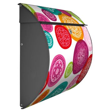 FUNKTION: DESIGN: Das Burg Wächter Modell Toscana mit Motiv Naive Blüten hat ein sehr ansprechendes und zeitloses Design und ist besonderes wetterfest. Heben Sie Sich von der tristen grauen Masse ab, ohne auf Funktionalität zu verzichten. Wir bieten Ihnen ebenfalls Namensschilder, bereits beschriftet oder frei zu beschriften, und verschiedene selbst gestaltete Bitte-Keine-Werbung-Aufkleber. DETAILS: Der Postkasten besteht aus vollflächig verzinktem Stahl welcher in Anthrazit oder Weiß lackiert wurde oder aus Edelstahl (je nach gewählter Variante). Das Motiv besteht aus einer wetter- und UV-festen Folie, die mit einem Schutzlaminat überzogen ist, durch die Ihren Briefkasten zusätzlich vor Kratzern geschützt ist und auf den Briefkasten kaschiert wurde. Sie erhalten zu Ihrem neuen Design Briefkasten 2 Schlüssel sowie das passende Montagematerial. BANJADO: Ihr Briefkasten wird von Burg Wächter in Deutschland gefertigt und in unserer kleinen Manufaktur von Hand veredelt. Die Motivfolie ist lösungsmittelfrei und schutzlaminiert, dies sorgt für einen langen Halt. Wir legen großen Wert auf die Verbindung von Funktionalität und Design. Sie erhalten besondere Handarbeit aus Sachsen und Made in Germany.