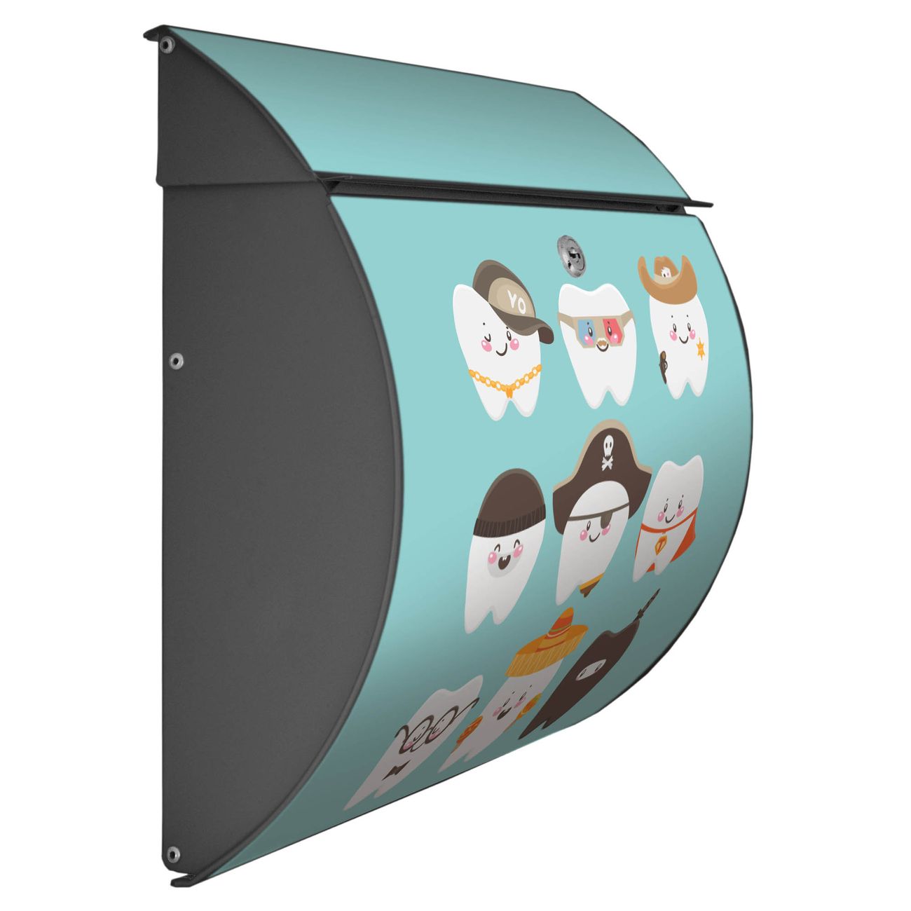Der geschwungene Burg Wächter Briefkasten Toscana mit Motiv Neun Zähne bietet Ihnen mit seinem großen Fassungsvermögen genügend Platz auch für große A4 Sendungen. Auf Wunsch können Sie bei uns den passenden Standfuß bestellen und so aus dem Wandbriefkasten einen Standbriefkasten machen. Der integrierte Öffnungsstopp ermöglicht eine einfache Handhabung beim Entnehmen der Post.