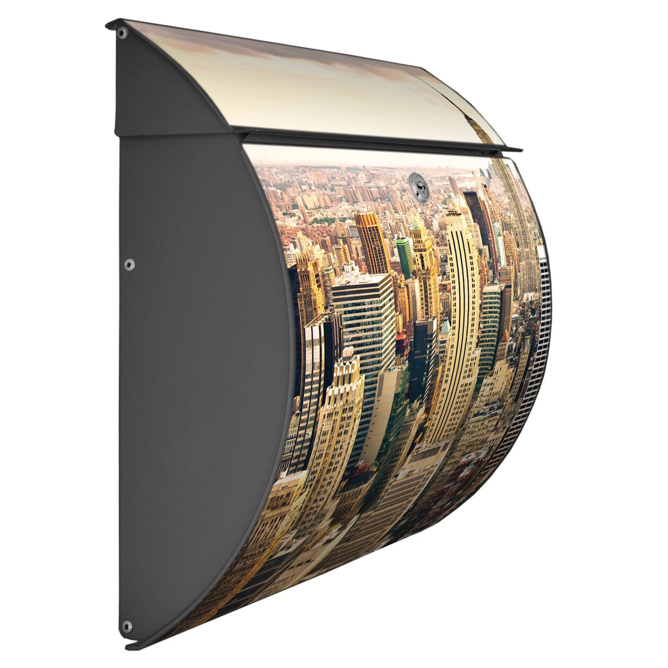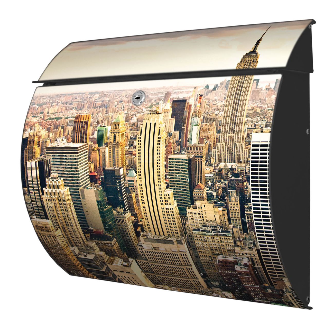 Der geschwungene Burg Wächter Briefkasten Toscana mit Motiv New York City bietet Ihnen mit seinem großen Fassungsvermögen genügend Platz auch für große A4 Sendungen. Auf Wunsch können Sie bei uns den passenden Standfuß bestellen und so aus dem Wandbriefkasten einen Standbriefkasten machen. Der integrierte Öffnungsstopp ermöglicht eine einfache Handhabung beim Entnehmen der Post.