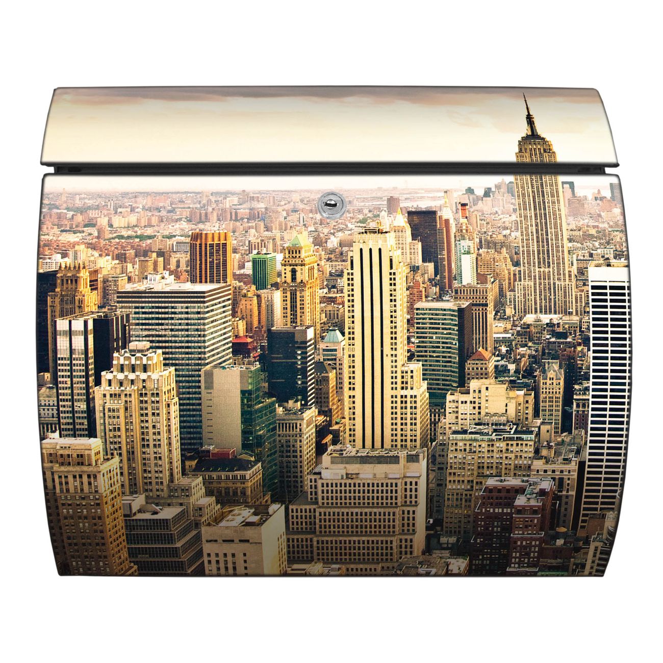FUNKTION: DESIGN: Das Burg Wächter Modell Toscana mit Motiv New York City hat ein sehr ansprechendes und zeitloses Design und ist besonderes wetterfest. Heben Sie Sich von der tristen grauen Masse ab, ohne auf Funktionalität zu verzichten. Wir bieten Ihnen ebenfalls Namensschilder, bereits beschriftet oder frei zu beschriften, und verschiedene selbst gestaltete Bitte-Keine-Werbung-Aufkleber. DETAILS: Der Postkasten besteht aus vollflächig verzinktem Stahl welcher in Anthrazit oder Weiß lackiert wurde oder aus Edelstahl (je nach gewählter Variante). Das Motiv besteht aus einer wetter- und UV-festen Folie, die mit einem Schutzlaminat überzogen ist, durch die Ihren Briefkasten zusätzlich vor Kratzern geschützt ist und auf den Briefkasten kaschiert wurde. Sie erhalten zu Ihrem neuen Design Briefkasten 2 Schlüssel sowie das passende Montagematerial. BANJADO: Ihr Briefkasten wird von Burg Wächter in Deutschland gefertigt und in unserer kleinen Manufaktur von Hand veredelt. Die Motivfolie ist lösungsmittelfrei und schutzlaminiert, dies sorgt für einen langen Halt. Wir legen großen Wert auf die Verbindung von Funktionalität und Design. Sie erhalten besondere Handarbeit aus Sachsen und Made in Germany.