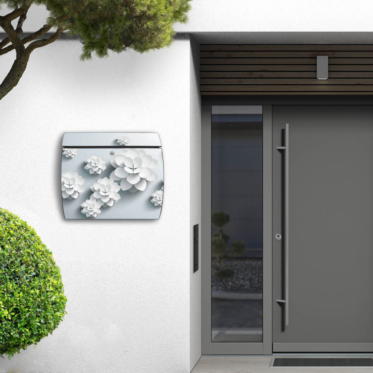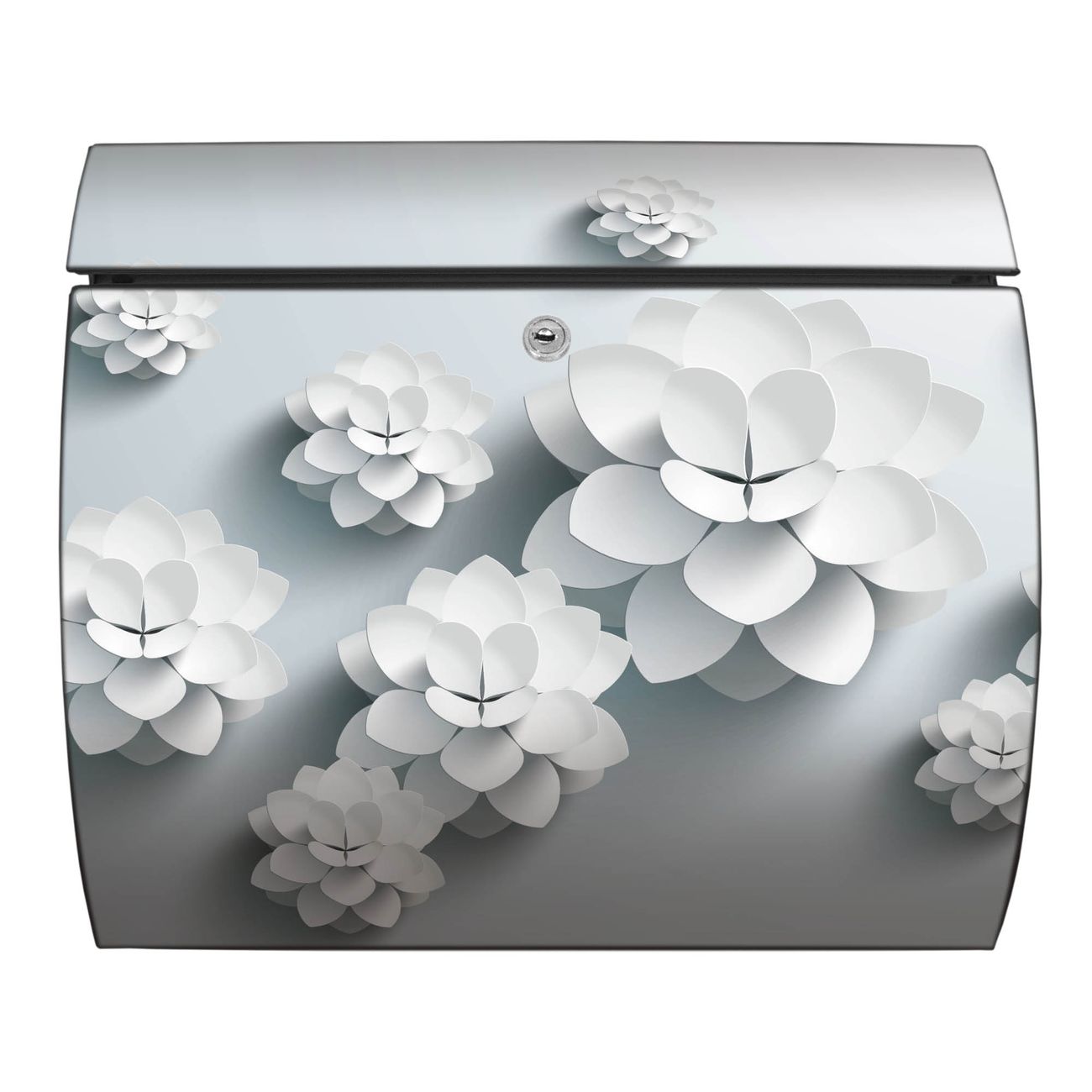 FUNKTION: DESIGN: Das Burg Wächter Modell Toscana mit Motiv Papier Lotus hat ein sehr ansprechendes und zeitloses Design und ist besonderes wetterfest. Heben Sie Sich von der tristen grauen Masse ab, ohne auf Funktionalität zu verzichten. Wir bieten Ihnen ebenfalls Namensschilder, bereits beschriftet oder frei zu beschriften, und verschiedene selbst gestaltete Bitte-Keine-Werbung-Aufkleber. DETAILS: Der Postkasten besteht aus vollflächig verzinktem Stahl welcher in Anthrazit oder Weiß lackiert wurde oder aus Edelstahl (je nach gewählter Variante). Das Motiv besteht aus einer wetter- und UV-festen Folie, die mit einem Schutzlaminat überzogen ist, durch die Ihren Briefkasten zusätzlich vor Kratzern geschützt ist und auf den Briefkasten kaschiert wurde. Sie erhalten zu Ihrem neuen Design Briefkasten 2 Schlüssel sowie das passende Montagematerial. BANJADO: Ihr Briefkasten wird von Burg Wächter in Deutschland gefertigt und in unserer kleinen Manufaktur von Hand veredelt. Die Motivfolie ist lösungsmittelfrei und schutzlaminiert, dies sorgt für einen langen Halt. Wir legen großen Wert auf die Verbindung von Funktionalität und Design. Sie erhalten besondere Handarbeit aus Sachsen und Made in Germany.