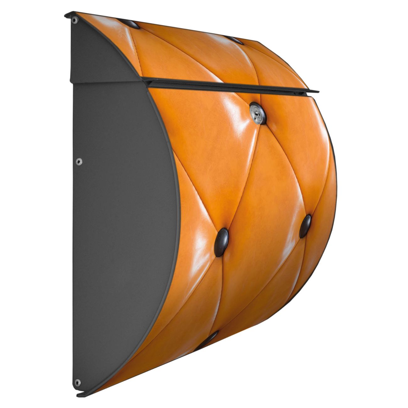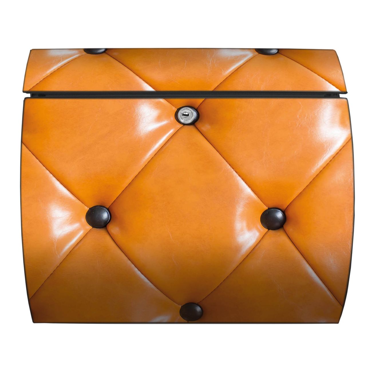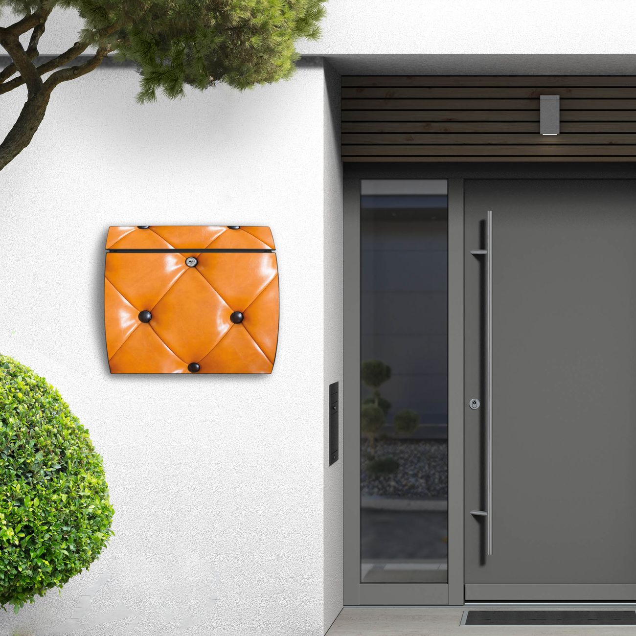 FUNKTION: DESIGN: Das Burg Wächter Modell Toscana mit Motiv Polster Orange hat ein sehr ansprechendes und zeitloses Design und ist besonderes wetterfest. Heben Sie Sich von der tristen grauen Masse ab, ohne auf Funktionalität zu verzichten. Wir bieten Ihnen ebenfalls Namensschilder, bereits beschriftet oder frei zu beschriften, und verschiedene selbst gestaltete Bitte-Keine-Werbung-Aufkleber. DETAILS: Der Postkasten besteht aus vollflächig verzinktem Stahl welcher in Anthrazit oder Weiß lackiert wurde oder aus Edelstahl (je nach gewählter Variante). Das Motiv besteht aus einer wetter- und UV-festen Folie, die mit einem Schutzlaminat überzogen ist, durch die Ihren Briefkasten zusätzlich vor Kratzern geschützt ist und auf den Briefkasten kaschiert wurde. Sie erhalten zu Ihrem neuen Design Briefkasten 2 Schlüssel sowie das passende Montagematerial. BANJADO: Ihr Briefkasten wird von Burg Wächter in Deutschland gefertigt und in unserer kleinen Manufaktur von Hand veredelt. Die Motivfolie ist lösungsmittelfrei und schutzlaminiert, dies sorgt für einen langen Halt. Wir legen großen Wert auf die Verbindung von Funktionalität und Design. Sie erhalten besondere Handarbeit aus Sachsen und Made in Germany.