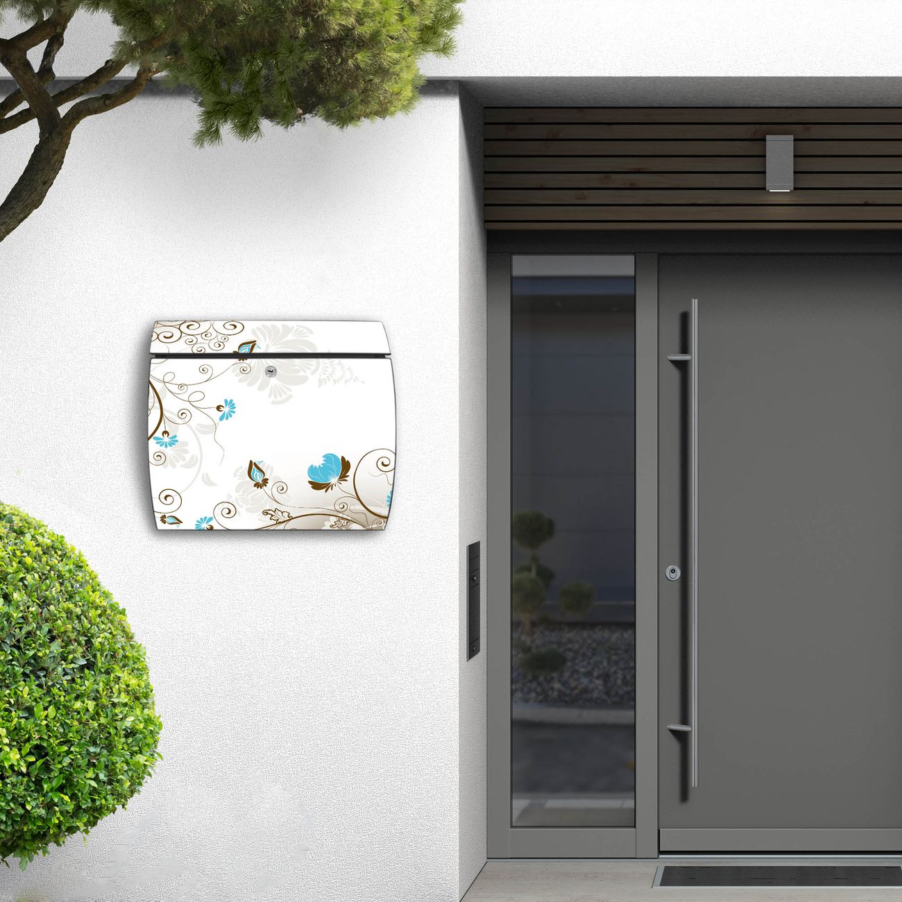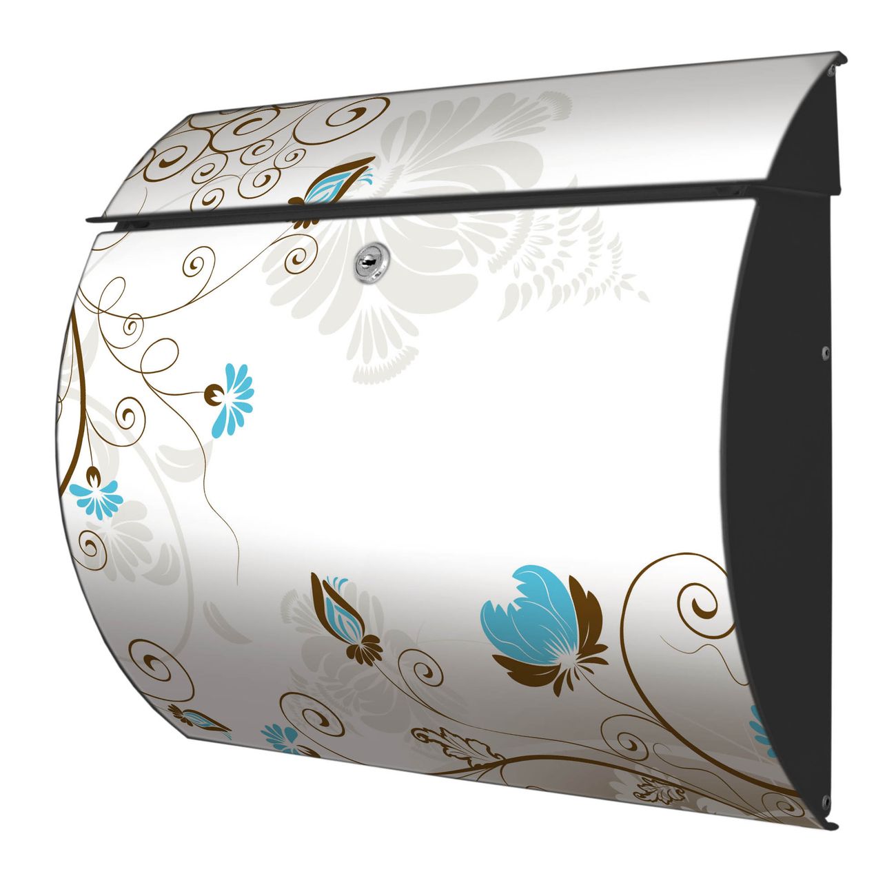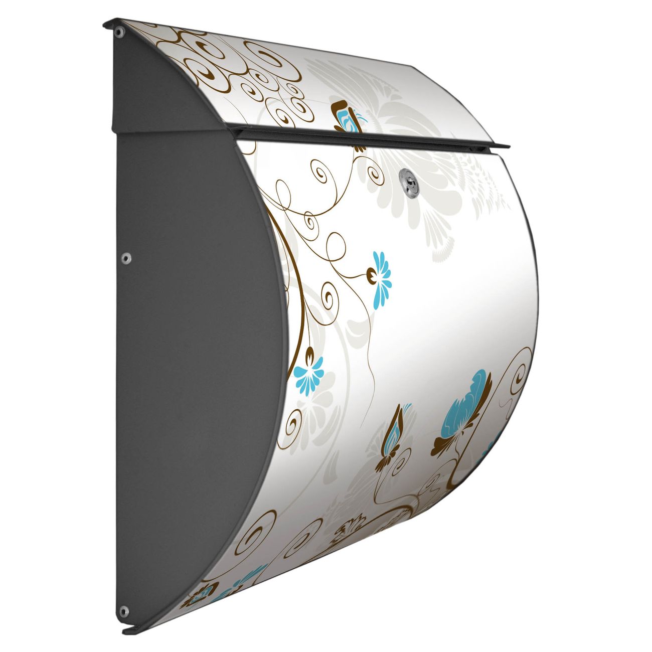 FUNKTION: DESIGN: Das Burg Wächter Modell Toscana mit Motiv Rankenrahmen hat ein sehr ansprechendes und zeitloses Design und ist besonderes wetterfest. Heben Sie Sich von der tristen grauen Masse ab, ohne auf Funktionalität zu verzichten. Wir bieten Ihnen ebenfalls Namensschilder, bereits beschriftet oder frei zu beschriften, und verschiedene selbst gestaltete Bitte-Keine-Werbung-Aufkleber. DETAILS: Der Postkasten besteht aus vollflächig verzinktem Stahl welcher in Anthrazit oder Weiß lackiert wurde oder aus Edelstahl (je nach gewählter Variante). Das Motiv besteht aus einer wetter- und UV-festen Folie, die mit einem Schutzlaminat überzogen ist, durch die Ihren Briefkasten zusätzlich vor Kratzern geschützt ist und auf den Briefkasten kaschiert wurde. Sie erhalten zu Ihrem neuen Design Briefkasten 2 Schlüssel sowie das passende Montagematerial. BANJADO: Ihr Briefkasten wird von Burg Wächter in Deutschland gefertigt und in unserer kleinen Manufaktur von Hand veredelt. Die Motivfolie ist lösungsmittelfrei und schutzlaminiert, dies sorgt für einen langen Halt. Wir legen großen Wert auf die Verbindung von Funktionalität und Design. Sie erhalten besondere Handarbeit aus Sachsen und Made in Germany.