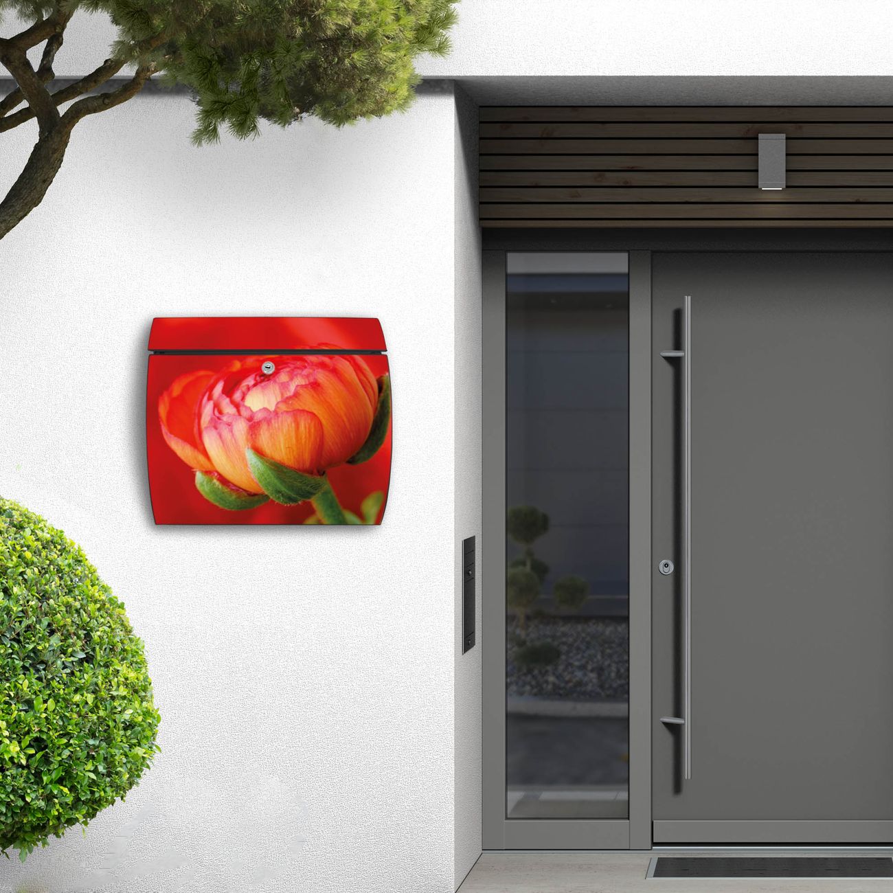 FUNKTION: DESIGN: Das Burg Wächter Modell Toscana mit Motiv Ranunkel hat ein sehr ansprechendes und zeitloses Design und ist besonderes wetterfest. Heben Sie Sich von der tristen grauen Masse ab, ohne auf Funktionalität zu verzichten. Wir bieten Ihnen ebenfalls Namensschilder, bereits beschriftet oder frei zu beschriften, und verschiedene selbst gestaltete Bitte-Keine-Werbung-Aufkleber. DETAILS: Der Postkasten besteht aus vollflächig verzinktem Stahl welcher in Anthrazit oder Weiß lackiert wurde oder aus Edelstahl (je nach gewählter Variante). Das Motiv besteht aus einer wetter- und UV-festen Folie, die mit einem Schutzlaminat überzogen ist, durch die Ihren Briefkasten zusätzlich vor Kratzern geschützt ist und auf den Briefkasten kaschiert wurde. Sie erhalten zu Ihrem neuen Design Briefkasten 2 Schlüssel sowie das passende Montagematerial. BANJADO: Ihr Briefkasten wird von Burg Wächter in Deutschland gefertigt und in unserer kleinen Manufaktur von Hand veredelt. Die Motivfolie ist lösungsmittelfrei und schutzlaminiert, dies sorgt für einen langen Halt. Wir legen großen Wert auf die Verbindung von Funktionalität und Design. Sie erhalten besondere Handarbeit aus Sachsen und Made in Germany.
