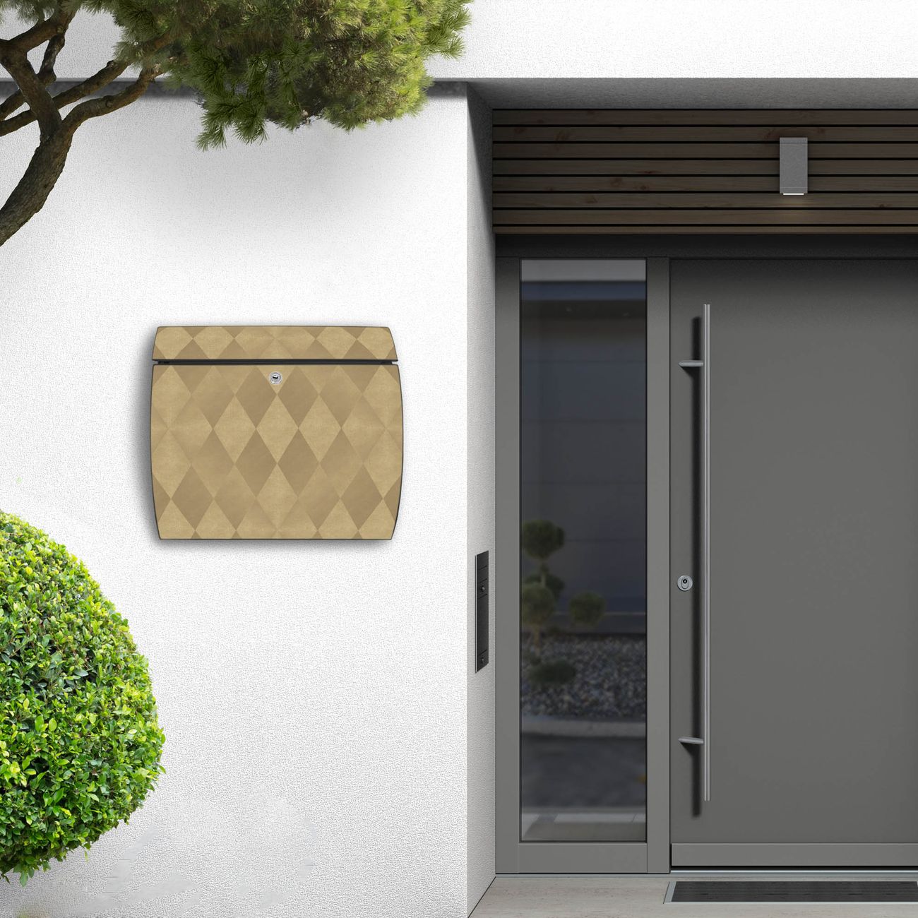 FUNKTION: DESIGN: Das Burg Wächter Modell Toscana mit Motiv Rauten Metall hat ein sehr ansprechendes und zeitloses Design und ist besonderes wetterfest. Heben Sie Sich von der tristen grauen Masse ab, ohne auf Funktionalität zu verzichten. Wir bieten Ihnen ebenfalls Namensschilder, bereits beschriftet oder frei zu beschriften, und verschiedene selbst gestaltete Bitte-Keine-Werbung-Aufkleber. DETAILS: Der Postkasten besteht aus vollflächig verzinktem Stahl welcher in Anthrazit oder Weiß lackiert wurde oder aus Edelstahl (je nach gewählter Variante). Das Motiv besteht aus einer wetter- und UV-festen Folie, die mit einem Schutzlaminat überzogen ist, durch die Ihren Briefkasten zusätzlich vor Kratzern geschützt ist und auf den Briefkasten kaschiert wurde. Sie erhalten zu Ihrem neuen Design Briefkasten 2 Schlüssel sowie das passende Montagematerial. BANJADO: Ihr Briefkasten wird von Burg Wächter in Deutschland gefertigt und in unserer kleinen Manufaktur von Hand veredelt. Die Motivfolie ist lösungsmittelfrei und schutzlaminiert, dies sorgt für einen langen Halt. Wir legen großen Wert auf die Verbindung von Funktionalität und Design. Sie erhalten besondere Handarbeit aus Sachsen und Made in Germany.