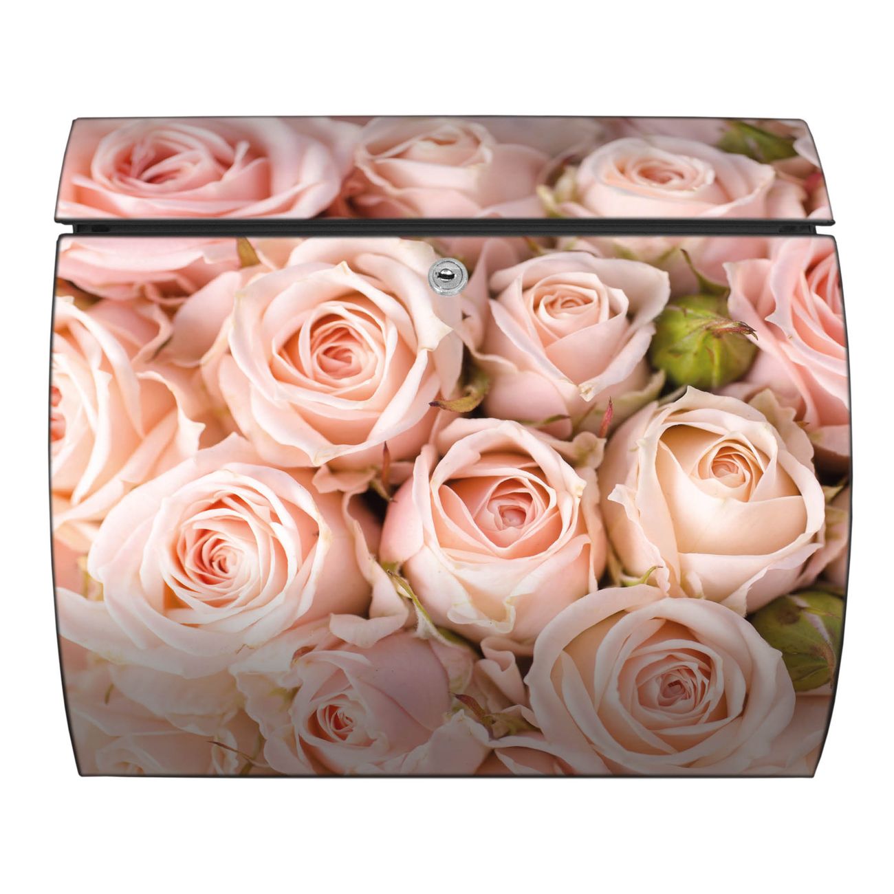 Der geschwungene Burg Wächter Briefkasten Toscana mit Motiv Rosenbouquet bietet Ihnen mit seinem großen Fassungsvermögen genügend Platz auch für große A4 Sendungen. Auf Wunsch können Sie bei uns den passenden Standfuß bestellen und so aus dem Wandbriefkasten einen Standbriefkasten machen. Der integrierte Öffnungsstopp ermöglicht eine einfache Handhabung beim Entnehmen der Post.