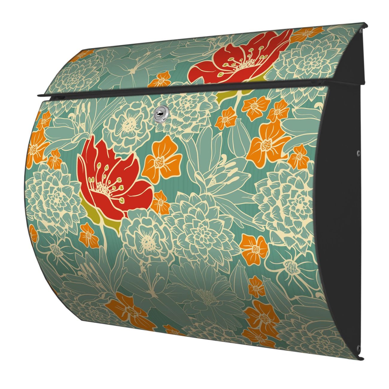 Der geschwungene Burg Wächter Briefkasten Toscana mit Motiv Rote Blumen bietet Ihnen mit seinem großen Fassungsvermögen genügend Platz auch für große A4 Sendungen. Auf Wunsch können Sie bei uns den passenden Standfuß bestellen und so aus dem Wandbriefkasten einen Standbriefkasten machen. Der integrierte Öffnungsstopp ermöglicht eine einfache Handhabung beim Entnehmen der Post.
