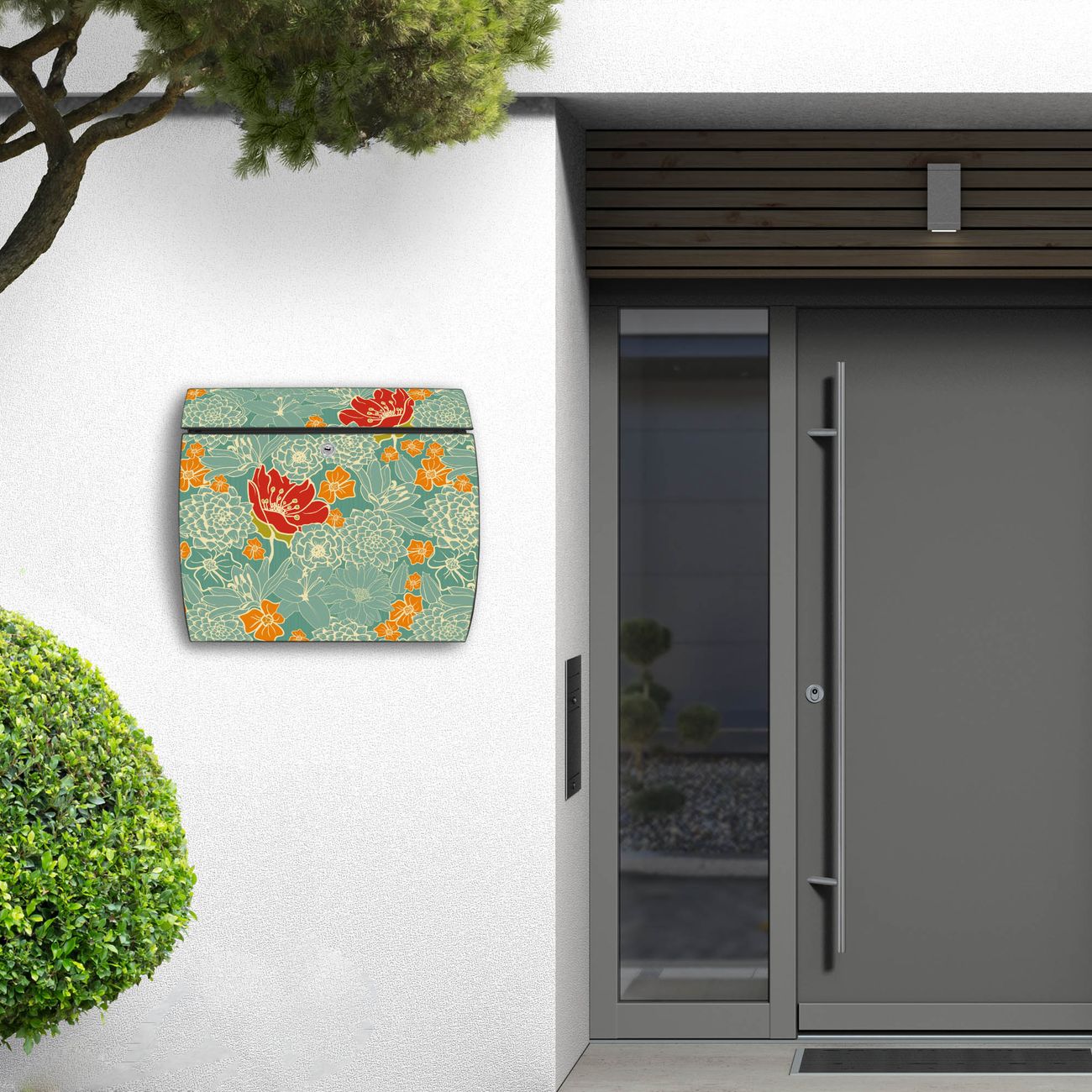 FUNKTION: DESIGN: Das Burg Wächter Modell Toscana mit Motiv Rote Blumen hat ein sehr ansprechendes und zeitloses Design und ist besonderes wetterfest. Heben Sie Sich von der tristen grauen Masse ab, ohne auf Funktionalität zu verzichten. Wir bieten Ihnen ebenfalls Namensschilder, bereits beschriftet oder frei zu beschriften, und verschiedene selbst gestaltete Bitte-Keine-Werbung-Aufkleber. DETAILS: Der Postkasten besteht aus vollflächig verzinktem Stahl welcher in Anthrazit oder Weiß lackiert wurde oder aus Edelstahl (je nach gewählter Variante). Das Motiv besteht aus einer wetter- und UV-festen Folie, die mit einem Schutzlaminat überzogen ist, durch die Ihren Briefkasten zusätzlich vor Kratzern geschützt ist und auf den Briefkasten kaschiert wurde. Sie erhalten zu Ihrem neuen Design Briefkasten 2 Schlüssel sowie das passende Montagematerial. BANJADO: Ihr Briefkasten wird von Burg Wächter in Deutschland gefertigt und in unserer kleinen Manufaktur von Hand veredelt. Die Motivfolie ist lösungsmittelfrei und schutzlaminiert, dies sorgt für einen langen Halt. Wir legen großen Wert auf die Verbindung von Funktionalität und Design. Sie erhalten besondere Handarbeit aus Sachsen und Made in Germany.