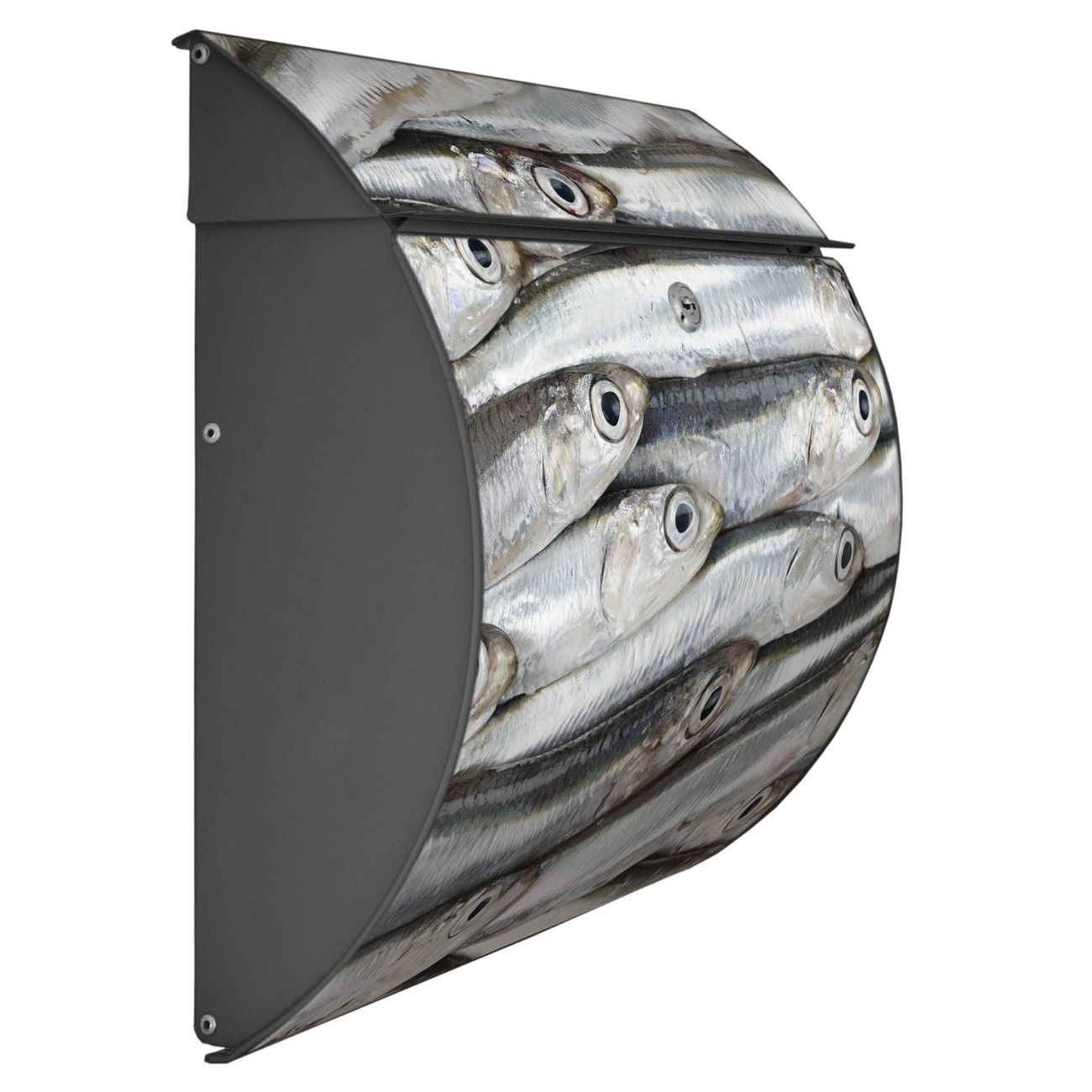 FUNKTION: DESIGN: Das Burg Wächter Modell Toscana mit Motiv Sardinen hat ein sehr ansprechendes und zeitloses Design und ist besonderes wetterfest. Heben Sie Sich von der tristen grauen Masse ab, ohne auf Funktionalität zu verzichten. Wir bieten Ihnen ebenfalls Namensschilder, bereits beschriftet oder frei zu beschriften, und verschiedene selbst gestaltete Bitte-Keine-Werbung-Aufkleber. DETAILS: Der Postkasten besteht aus vollflächig verzinktem Stahl welcher in Anthrazit oder Weiß lackiert wurde oder aus Edelstahl (je nach gewählter Variante). Das Motiv besteht aus einer wetter- und UV-festen Folie, die mit einem Schutzlaminat überzogen ist, durch die Ihren Briefkasten zusätzlich vor Kratzern geschützt ist und auf den Briefkasten kaschiert wurde. Sie erhalten zu Ihrem neuen Design Briefkasten 2 Schlüssel sowie das passende Montagematerial. BANJADO: Ihr Briefkasten wird von Burg Wächter in Deutschland gefertigt und in unserer kleinen Manufaktur von Hand veredelt. Die Motivfolie ist lösungsmittelfrei und schutzlaminiert, dies sorgt für einen langen Halt. Wir legen großen Wert auf die Verbindung von Funktionalität und Design. Sie erhalten besondere Handarbeit aus Sachsen und Made in Germany.