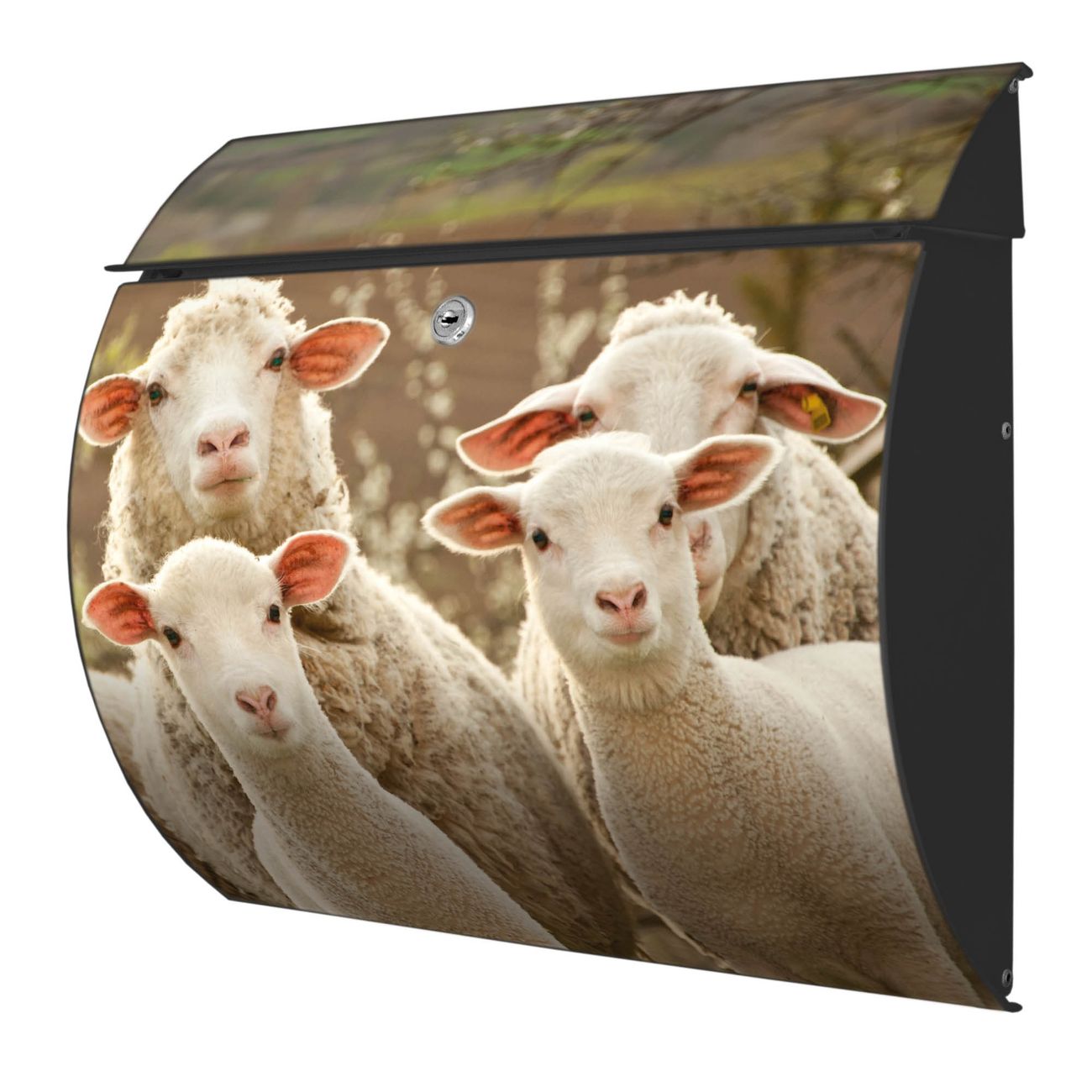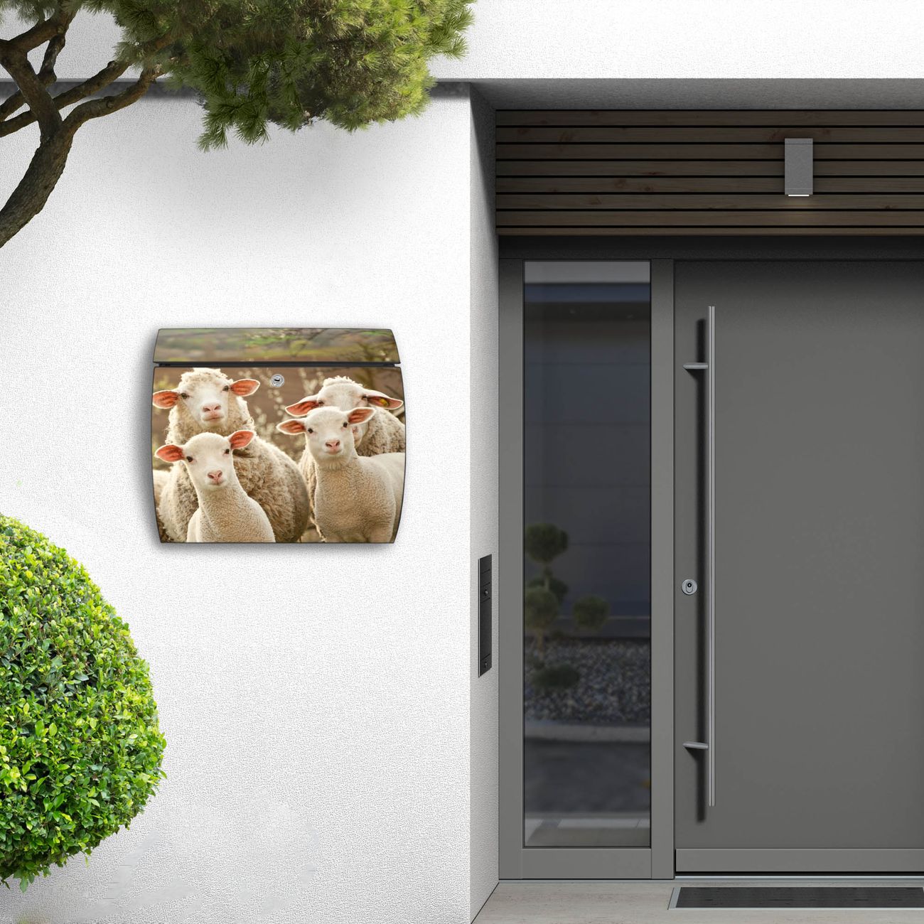 FUNKTION: DESIGN: Das Burg Wächter Modell Toscana mit Motiv Schaffamilie hat ein sehr ansprechendes und zeitloses Design und ist besonderes wetterfest. Heben Sie Sich von der tristen grauen Masse ab, ohne auf Funktionalität zu verzichten. Wir bieten Ihnen ebenfalls Namensschilder, bereits beschriftet oder frei zu beschriften, und verschiedene selbst gestaltete Bitte-Keine-Werbung-Aufkleber. DETAILS: Der Postkasten besteht aus vollflächig verzinktem Stahl welcher in Anthrazit oder Weiß lackiert wurde oder aus Edelstahl (je nach gewählter Variante). Das Motiv besteht aus einer wetter- und UV-festen Folie, die mit einem Schutzlaminat überzogen ist, durch die Ihren Briefkasten zusätzlich vor Kratzern geschützt ist und auf den Briefkasten kaschiert wurde. Sie erhalten zu Ihrem neuen Design Briefkasten 2 Schlüssel sowie das passende Montagematerial. BANJADO: Ihr Briefkasten wird von Burg Wächter in Deutschland gefertigt und in unserer kleinen Manufaktur von Hand veredelt. Die Motivfolie ist lösungsmittelfrei und schutzlaminiert, dies sorgt für einen langen Halt. Wir legen großen Wert auf die Verbindung von Funktionalität und Design. Sie erhalten besondere Handarbeit aus Sachsen und Made in Germany.