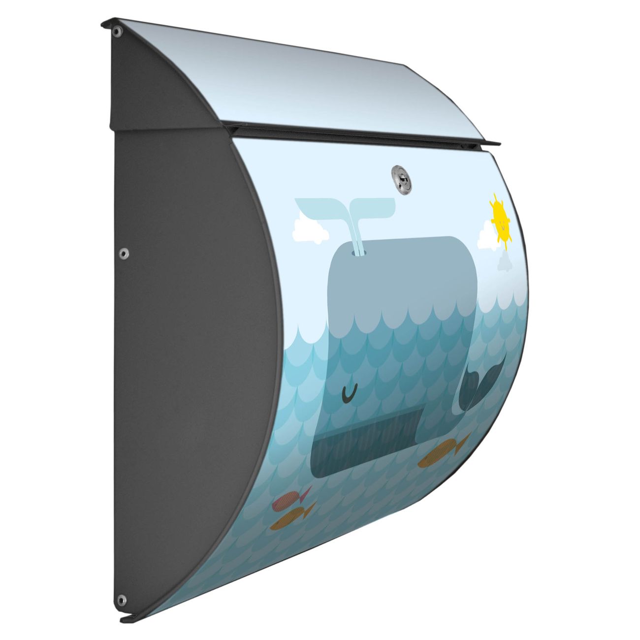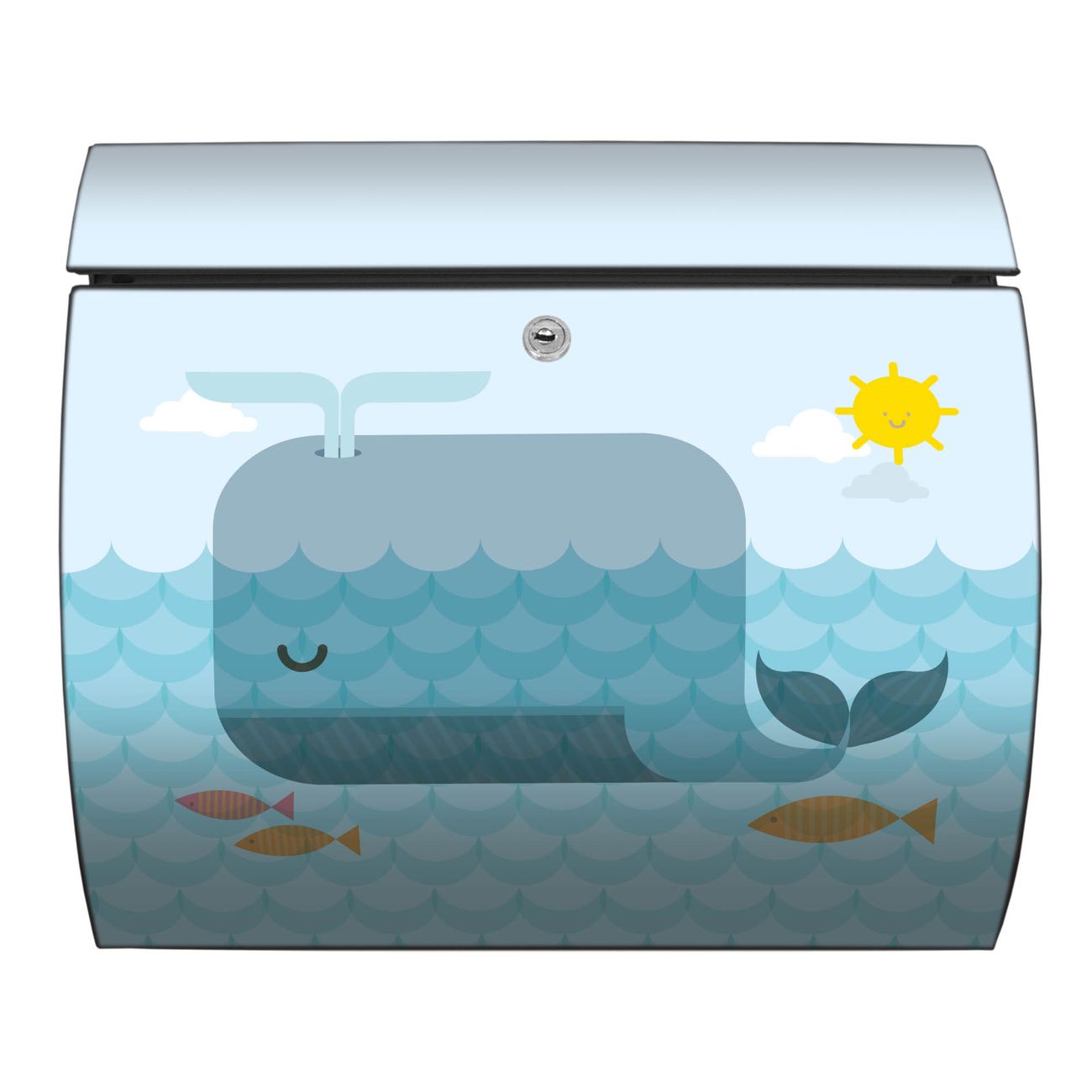 FUNKTION: DESIGN: Das Burg Wächter Modell Toscana mit Motiv Schlafender Wal hat ein sehr ansprechendes und zeitloses Design und ist besonderes wetterfest. Heben Sie Sich von der tristen grauen Masse ab, ohne auf Funktionalität zu verzichten. Wir bieten Ihnen ebenfalls Namensschilder, bereits beschriftet oder frei zu beschriften, und verschiedene selbst gestaltete Bitte-Keine-Werbung-Aufkleber. DETAILS: Der Postkasten besteht aus vollflächig verzinktem Stahl welcher in Anthrazit oder Weiß lackiert wurde oder aus Edelstahl (je nach gewählter Variante). Das Motiv besteht aus einer wetter- und UV-festen Folie, die mit einem Schutzlaminat überzogen ist, durch die Ihren Briefkasten zusätzlich vor Kratzern geschützt ist und auf den Briefkasten kaschiert wurde. Sie erhalten zu Ihrem neuen Design Briefkasten 2 Schlüssel sowie das passende Montagematerial. BANJADO: Ihr Briefkasten wird von Burg Wächter in Deutschland gefertigt und in unserer kleinen Manufaktur von Hand veredelt. Die Motivfolie ist lösungsmittelfrei und schutzlaminiert, dies sorgt für einen langen Halt. Wir legen großen Wert auf die Verbindung von Funktionalität und Design. Sie erhalten besondere Handarbeit aus Sachsen und Made in Germany.