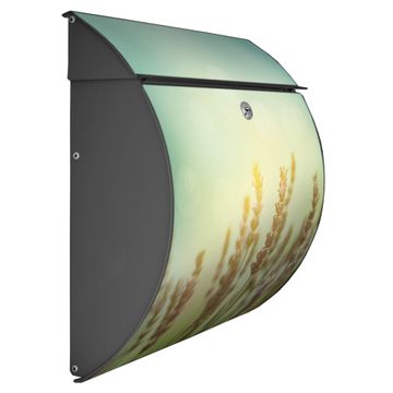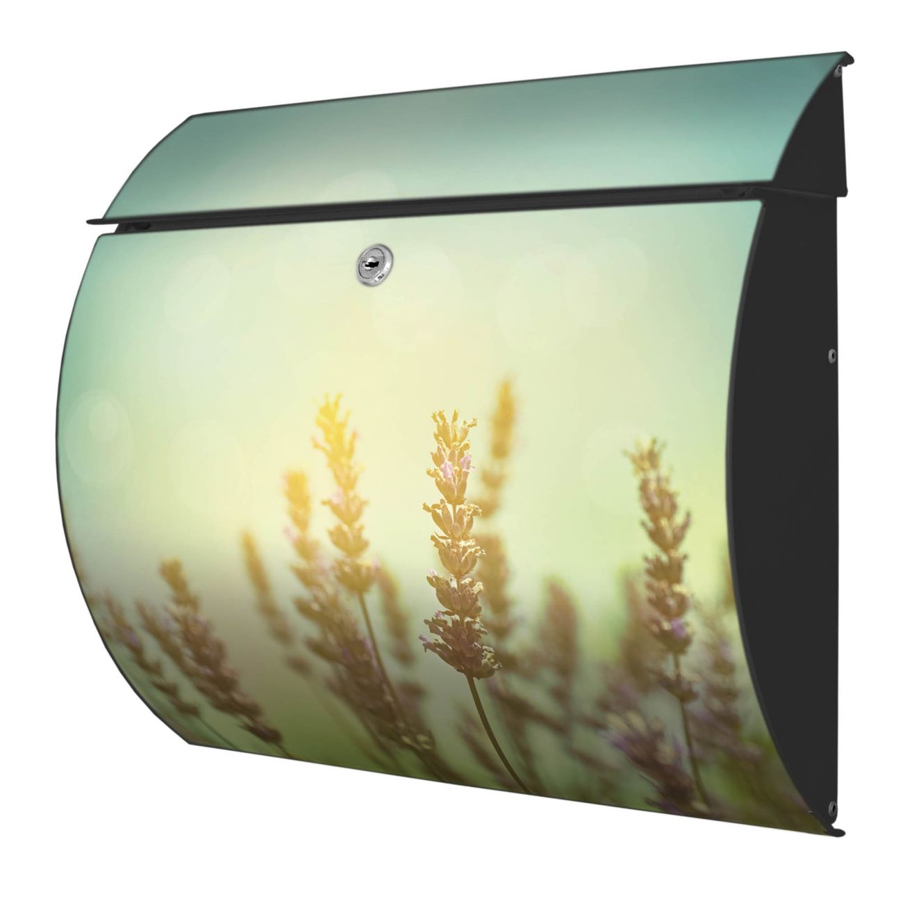 Der geschwungene Burg Wächter Briefkasten Toscana mit Motiv Sonnenlavendel bietet Ihnen mit seinem großen Fassungsvermögen genügend Platz auch für große A4 Sendungen. Auf Wunsch können Sie bei uns den passenden Standfuß bestellen und so aus dem Wandbriefkasten einen Standbriefkasten machen. Der integrierte Öffnungsstopp ermöglicht eine einfache Handhabung beim Entnehmen der Post.