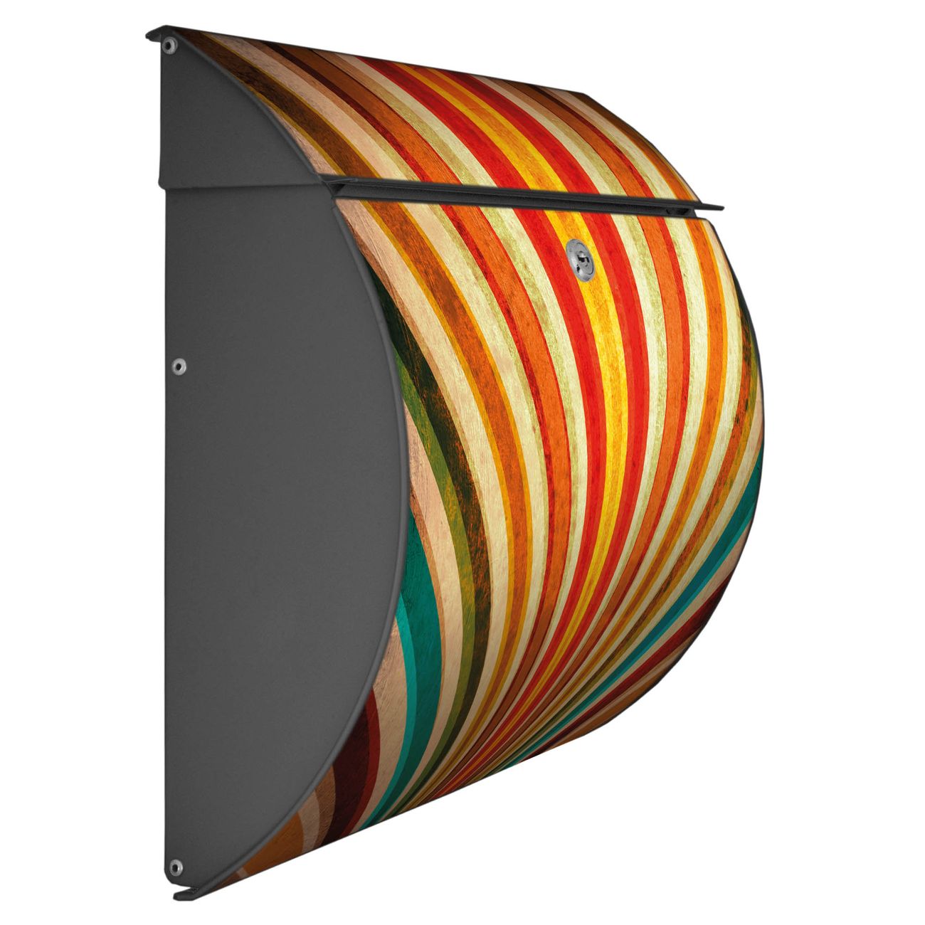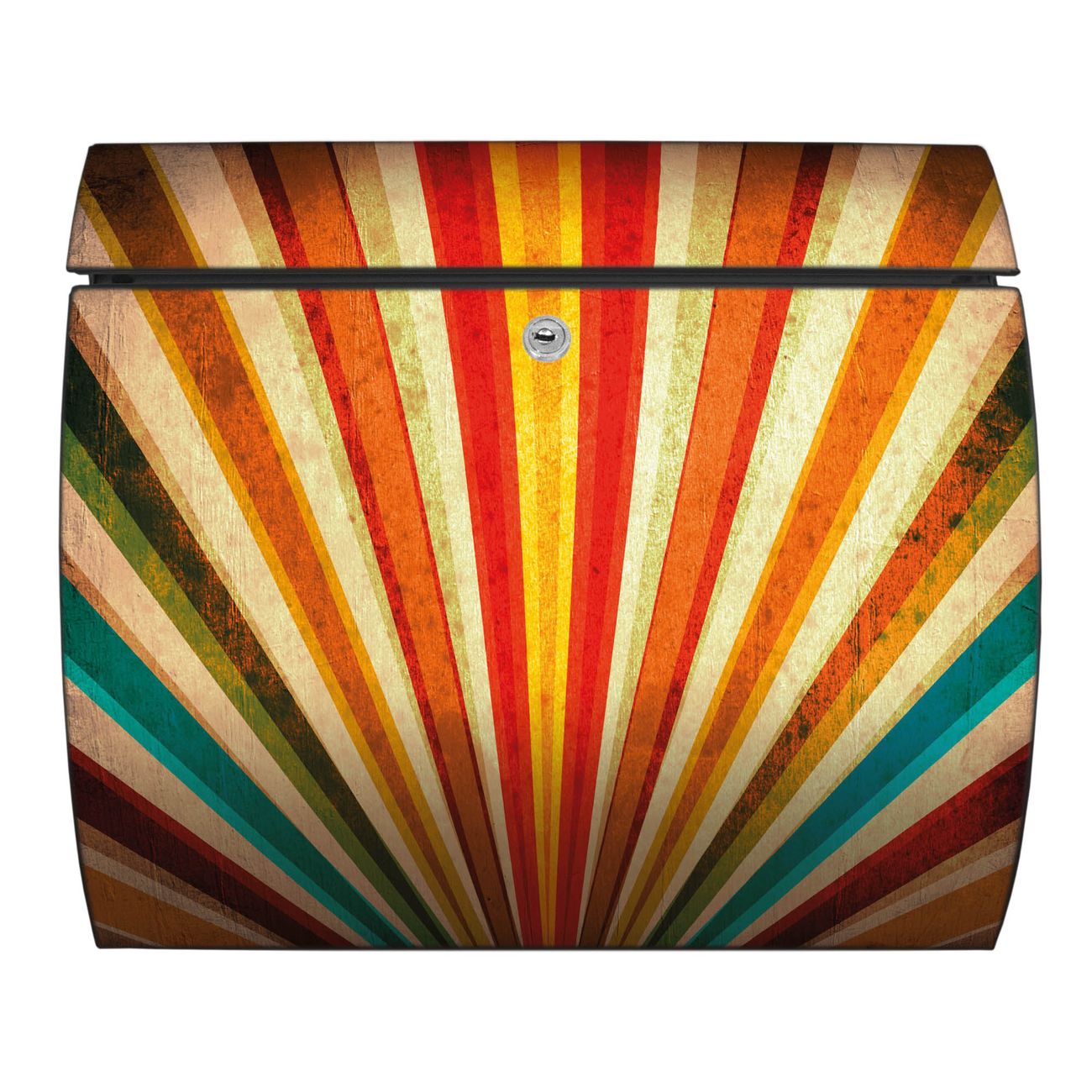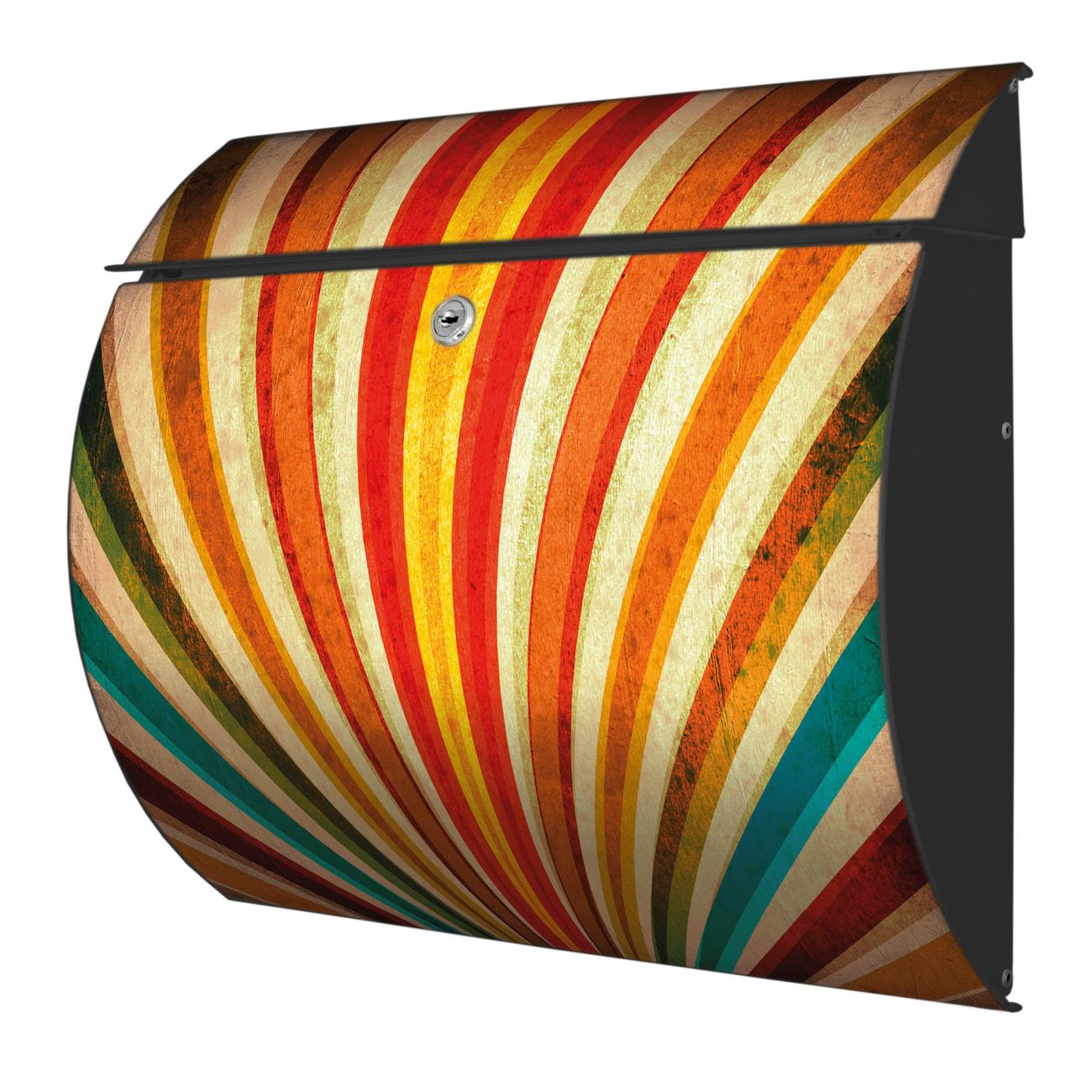 Der geschwungene Burg Wächter Briefkasten Toscana mit Motiv Sonnenuntergang Abstrakt bietet Ihnen mit seinem großen Fassungsvermögen genügend Platz auch für große A4 Sendungen. Auf Wunsch können Sie bei uns den passenden Standfuß bestellen und so aus dem Wandbriefkasten einen Standbriefkasten machen. Der integrierte Öffnungsstopp ermöglicht eine einfache Handhabung beim Entnehmen der Post.