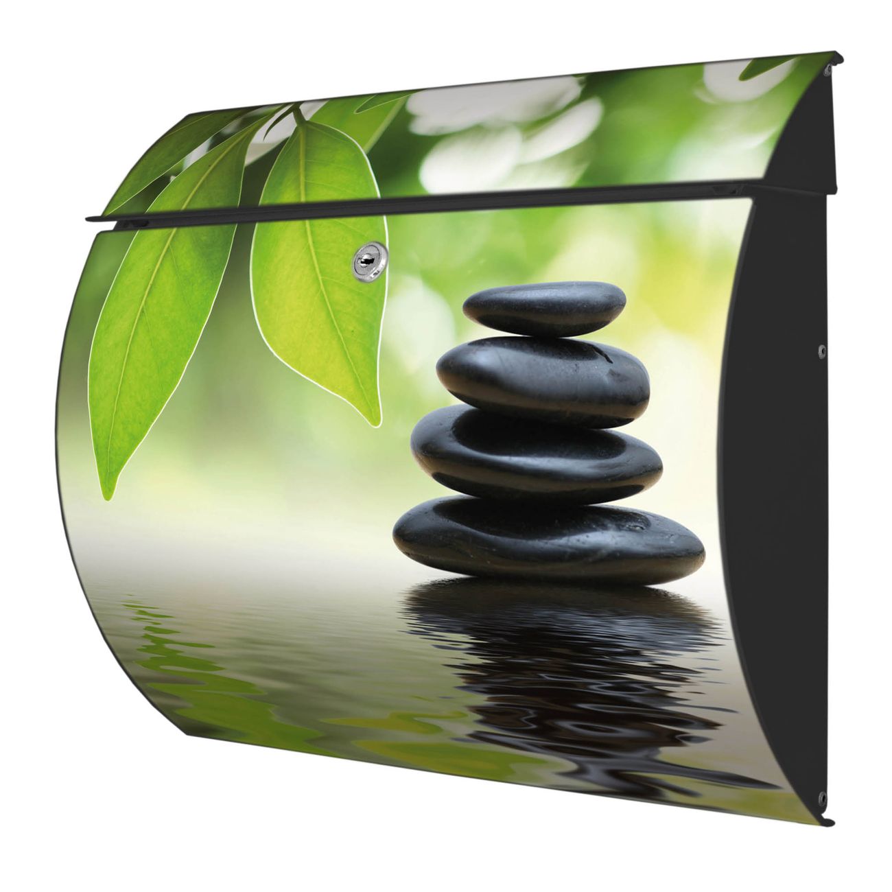 Der geschwungene Burg Wächter Briefkasten Toscana mit Motiv Steine&Relax bietet Ihnen mit seinem großen Fassungsvermögen genügend Platz auch für große A4 Sendungen. Auf Wunsch können Sie bei uns den passenden Standfuß bestellen und so aus dem Wandbriefkasten einen Standbriefkasten machen. Der integrierte Öffnungsstopp ermöglicht eine einfache Handhabung beim Entnehmen der Post.