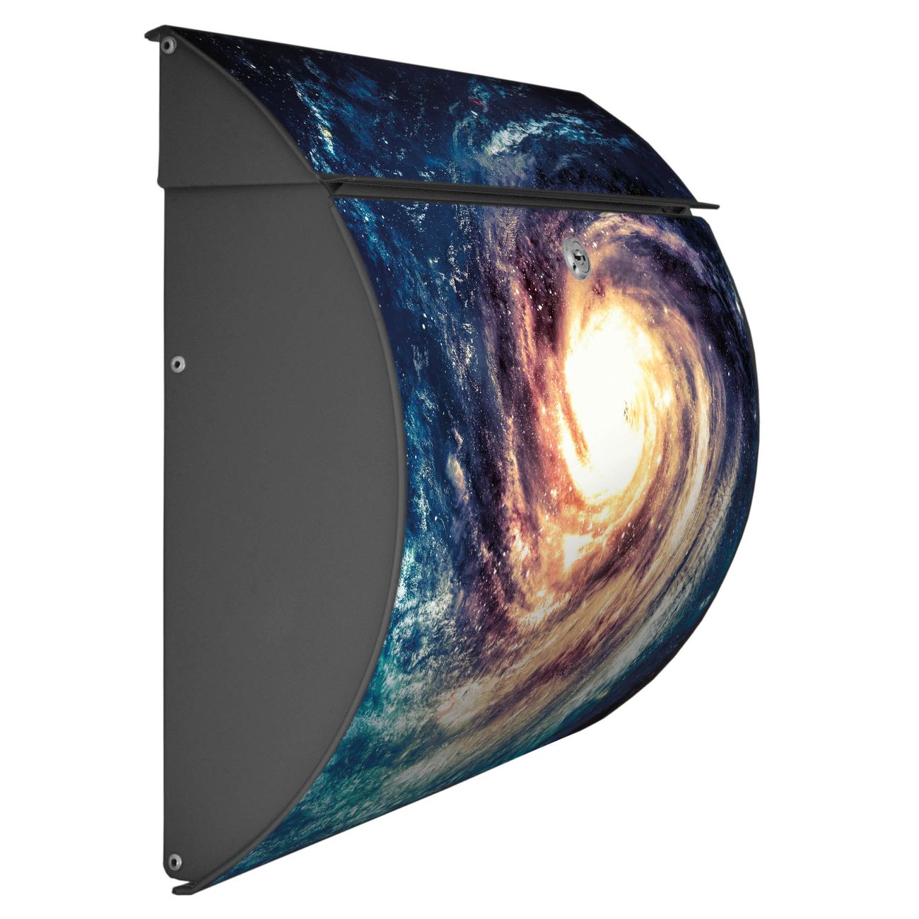 FUNKTION: DESIGN: Das Burg Wächter Modell Toscana mit Motiv Sternenwirbel hat ein sehr ansprechendes und zeitloses Design und ist besonderes wetterfest. Heben Sie Sich von der tristen grauen Masse ab, ohne auf Funktionalität zu verzichten. Wir bieten Ihnen ebenfalls Namensschilder, bereits beschriftet oder frei zu beschriften, und verschiedene selbst gestaltete Bitte-Keine-Werbung-Aufkleber. DETAILS: Der Postkasten besteht aus vollflächig verzinktem Stahl welcher in Anthrazit oder Weiß lackiert wurde oder aus Edelstahl (je nach gewählter Variante). Das Motiv besteht aus einer wetter- und UV-festen Folie, die mit einem Schutzlaminat überzogen ist, durch die Ihren Briefkasten zusätzlich vor Kratzern geschützt ist und auf den Briefkasten kaschiert wurde. Sie erhalten zu Ihrem neuen Design Briefkasten 2 Schlüssel sowie das passende Montagematerial. BANJADO: Ihr Briefkasten wird von Burg Wächter in Deutschland gefertigt und in unserer kleinen Manufaktur von Hand veredelt. Die Motivfolie ist lösungsmittelfrei und schutzlaminiert, dies sorgt für einen langen Halt. Wir legen großen Wert auf die Verbindung von Funktionalität und Design. Sie erhalten besondere Handarbeit aus Sachsen und Made in Germany.