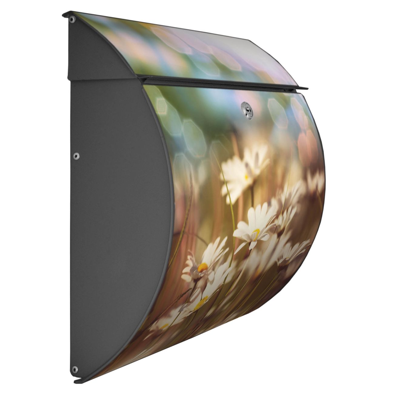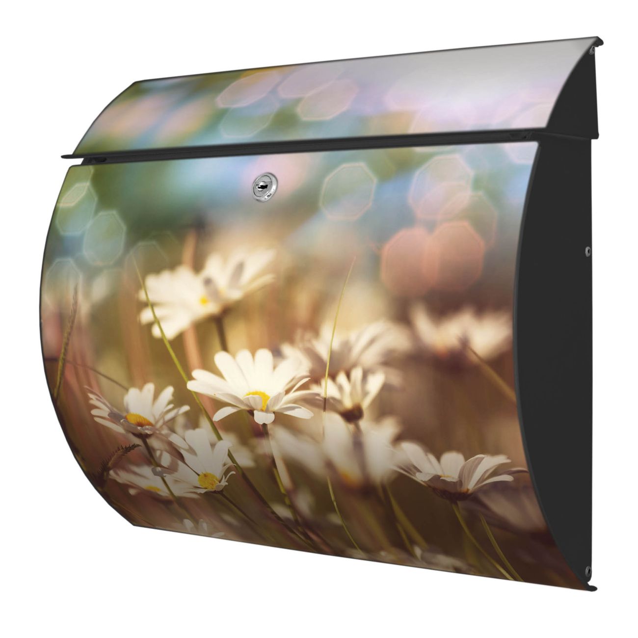 FUNKTION: DESIGN: Das Burg Wächter Modell Toscana mit Motiv Tausendschönwiese hat ein sehr ansprechendes und zeitloses Design und ist besonderes wetterfest. Heben Sie Sich von der tristen grauen Masse ab, ohne auf Funktionalität zu verzichten. Wir bieten Ihnen ebenfalls Namensschilder, bereits beschriftet oder frei zu beschriften, und verschiedene selbst gestaltete Bitte-Keine-Werbung-Aufkleber. DETAILS: Der Postkasten besteht aus vollflächig verzinktem Stahl welcher in Anthrazit oder Weiß lackiert wurde oder aus Edelstahl (je nach gewählter Variante). Das Motiv besteht aus einer wetter- und UV-festen Folie, die mit einem Schutzlaminat überzogen ist, durch die Ihren Briefkasten zusätzlich vor Kratzern geschützt ist und auf den Briefkasten kaschiert wurde. Sie erhalten zu Ihrem neuen Design Briefkasten 2 Schlüssel sowie das passende Montagematerial. BANJADO: Ihr Briefkasten wird von Burg Wächter in Deutschland gefertigt und in unserer kleinen Manufaktur von Hand veredelt. Die Motivfolie ist lösungsmittelfrei und schutzlaminiert, dies sorgt für einen langen Halt. Wir legen großen Wert auf die Verbindung von Funktionalität und Design. Sie erhalten besondere Handarbeit aus Sachsen und Made in Germany.