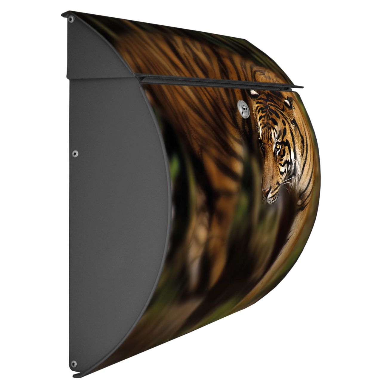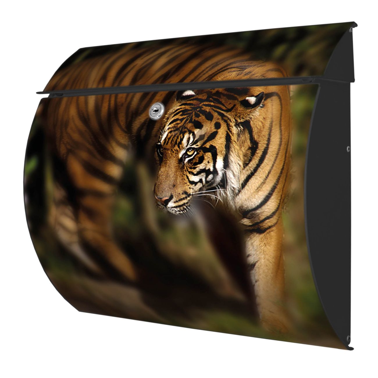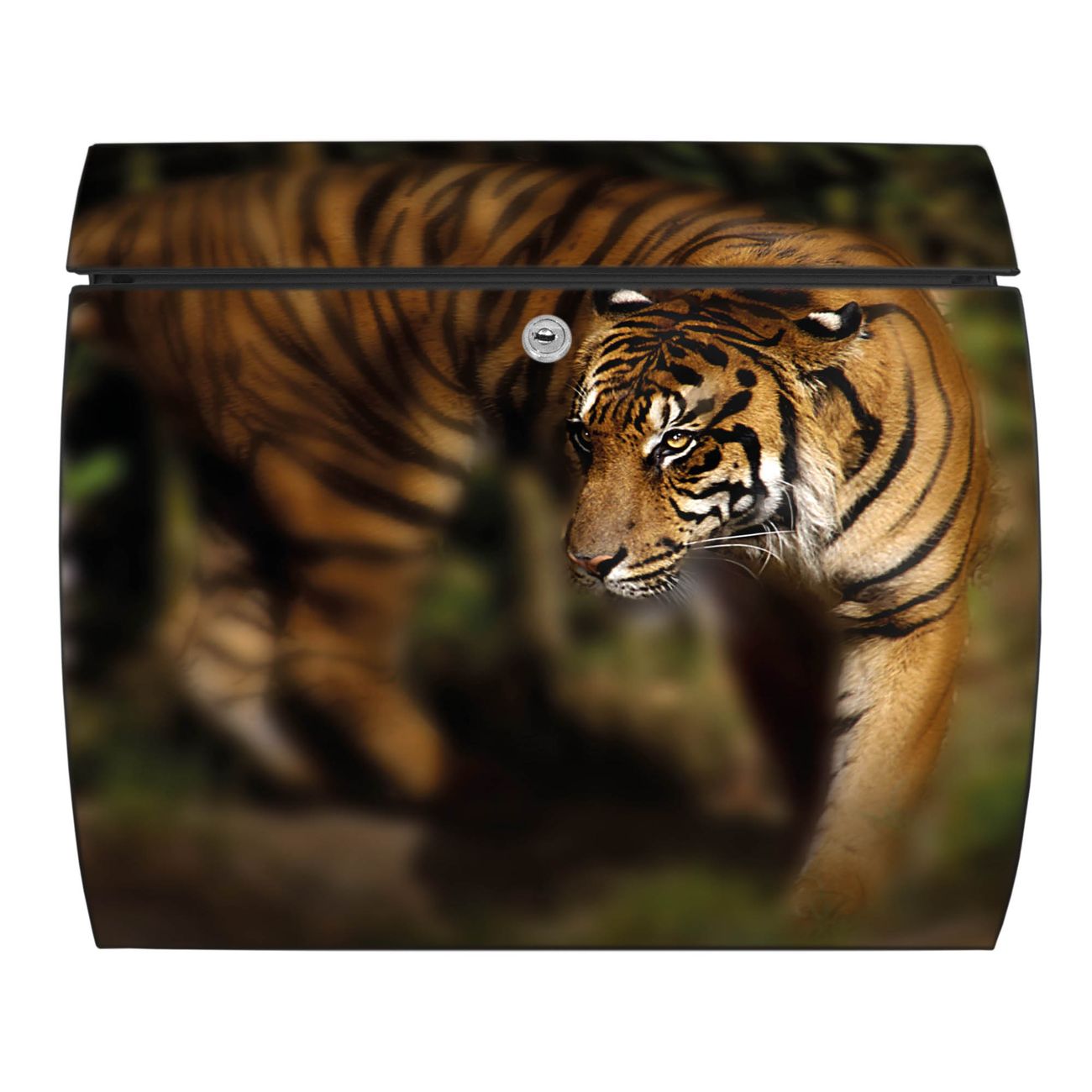 Der geschwungene Burg Wächter Briefkasten Toscana mit Motiv Tiger bietet Ihnen mit seinem großen Fassungsvermögen genügend Platz auch für große A4 Sendungen. Auf Wunsch können Sie bei uns den passenden Standfuß bestellen und so aus dem Wandbriefkasten einen Standbriefkasten machen. Der integrierte Öffnungsstopp ermöglicht eine einfache Handhabung beim Entnehmen der Post.