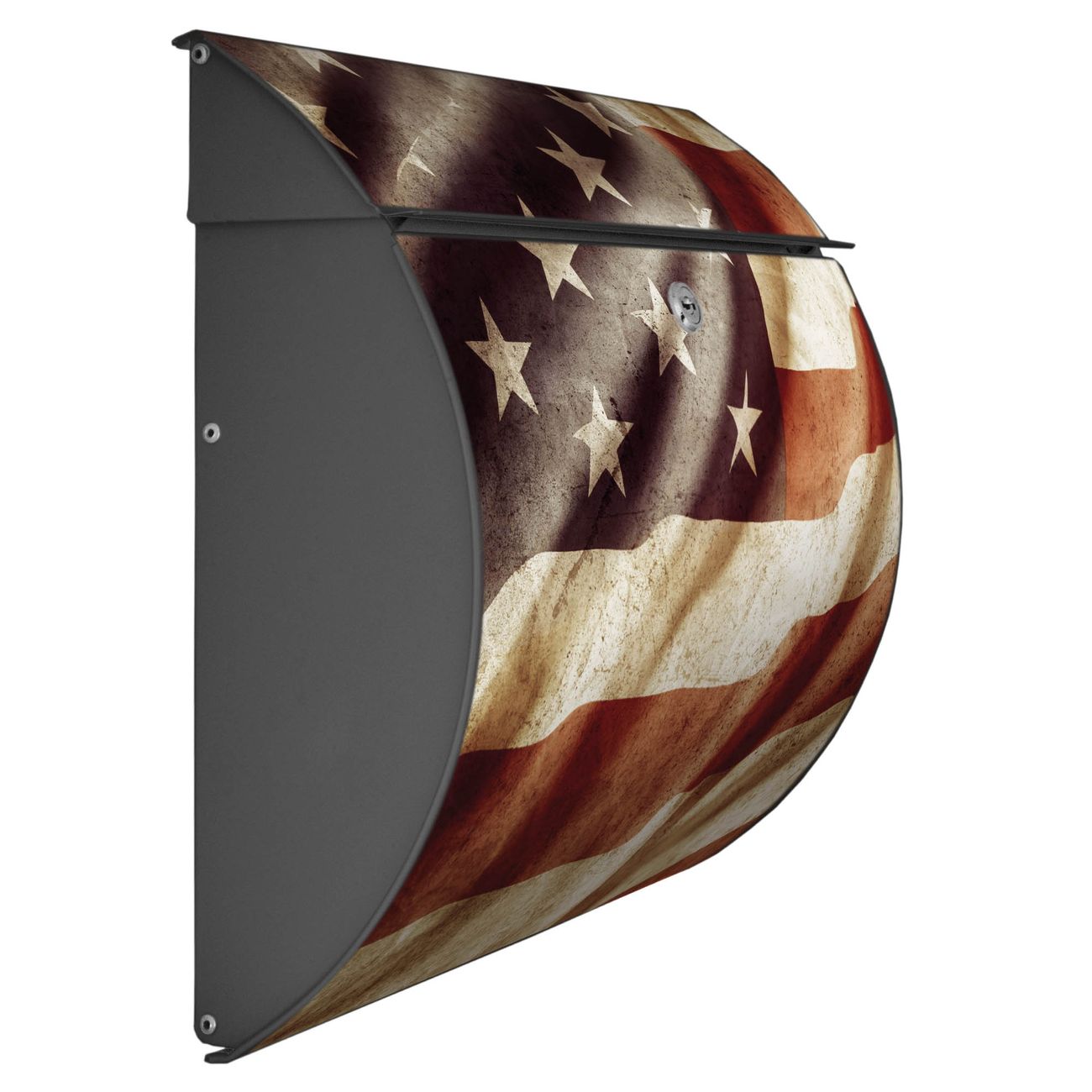 FUNKTION: DESIGN: Das Burg Wächter Modell Toscana mit Motiv United States hat ein sehr ansprechendes und zeitloses Design und ist besonderes wetterfest. Heben Sie Sich von der tristen grauen Masse ab, ohne auf Funktionalität zu verzichten. Wir bieten Ihnen ebenfalls Namensschilder, bereits beschriftet oder frei zu beschriften, und verschiedene selbst gestaltete Bitte-Keine-Werbung-Aufkleber. DETAILS: Der Postkasten besteht aus vollflächig verzinktem Stahl welcher in Anthrazit oder Weiß lackiert wurde oder aus Edelstahl (je nach gewählter Variante). Das Motiv besteht aus einer wetter- und UV-festen Folie, die mit einem Schutzlaminat überzogen ist, durch die Ihren Briefkasten zusätzlich vor Kratzern geschützt ist und auf den Briefkasten kaschiert wurde. Sie erhalten zu Ihrem neuen Design Briefkasten 2 Schlüssel sowie das passende Montagematerial. BANJADO: Ihr Briefkasten wird von Burg Wächter in Deutschland gefertigt und in unserer kleinen Manufaktur von Hand veredelt. Die Motivfolie ist lösungsmittelfrei und schutzlaminiert, dies sorgt für einen langen Halt. Wir legen großen Wert auf die Verbindung von Funktionalität und Design. Sie erhalten besondere Handarbeit aus Sachsen und Made in Germany.