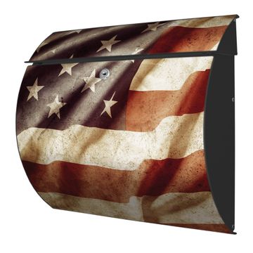 Der geschwungene Burg Wächter Briefkasten Toscana mit Motiv United States bietet Ihnen mit seinem großen Fassungsvermögen genügend Platz auch für große A4 Sendungen. Auf Wunsch können Sie bei uns den passenden Standfuß bestellen und so aus dem Wandbriefkasten einen Standbriefkasten machen. Der integrierte Öffnungsstopp ermöglicht eine einfache Handhabung beim Entnehmen der Post.