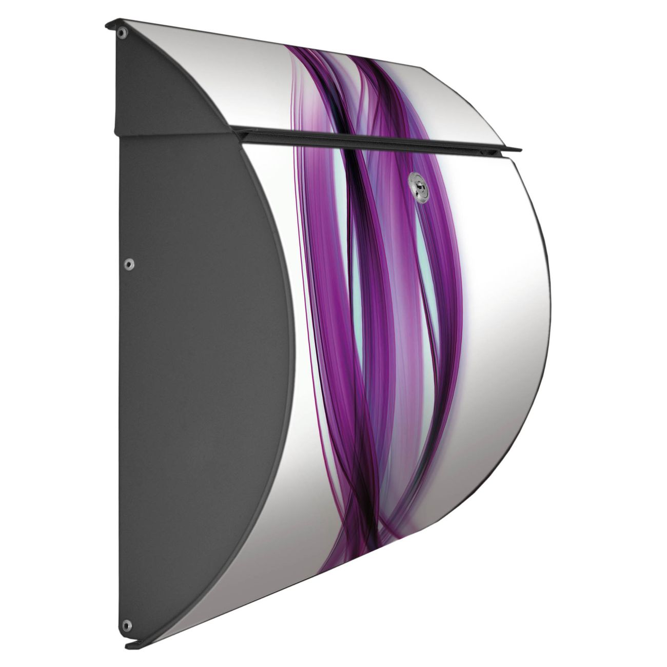 Der geschwungene Burg Wächter Briefkasten Toscana mit Motiv Violet Element bietet Ihnen mit seinem großen Fassungsvermögen genügend Platz auch für große A4 Sendungen. Auf Wunsch können Sie bei uns den passenden Standfuß bestellen und so aus dem Wandbriefkasten einen Standbriefkasten machen. Der integrierte Öffnungsstopp ermöglicht eine einfache Handhabung beim Entnehmen der Post.