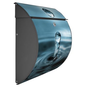 Der geschwungene Burg Wächter Briefkasten Toscana mit Motiv Wassertropfen bietet Ihnen mit seinem großen Fassungsvermögen genügend Platz auch für große A4 Sendungen. Auf Wunsch können Sie bei uns den passenden Standfuß bestellen und so aus dem Wandbriefkasten einen Standbriefkasten machen. Der integrierte Öffnungsstopp ermöglicht eine einfache Handhabung beim Entnehmen der Post.