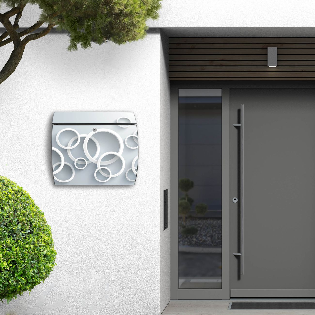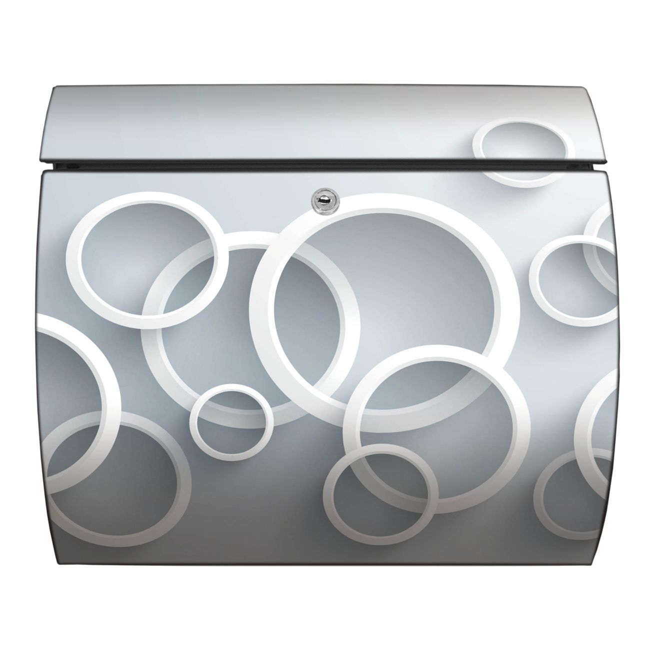 FUNKTION: DESIGN: Das Burg Wächter Modell Toscana mit Motiv Weiße Ringe hat ein sehr ansprechendes und zeitloses Design und ist besonderes wetterfest. Heben Sie Sich von der tristen grauen Masse ab, ohne auf Funktionalität zu verzichten. Wir bieten Ihnen ebenfalls Namensschilder, bereits beschriftet oder frei zu beschriften, und verschiedene selbst gestaltete Bitte-Keine-Werbung-Aufkleber. DETAILS: Der Postkasten besteht aus vollflächig verzinktem Stahl welcher in Anthrazit oder Weiß lackiert wurde oder aus Edelstahl (je nach gewählter Variante). Das Motiv besteht aus einer wetter- und UV-festen Folie, die mit einem Schutzlaminat überzogen ist, durch die Ihren Briefkasten zusätzlich vor Kratzern geschützt ist und auf den Briefkasten kaschiert wurde. Sie erhalten zu Ihrem neuen Design Briefkasten 2 Schlüssel sowie das passende Montagematerial. BANJADO: Ihr Briefkasten wird von Burg Wächter in Deutschland gefertigt und in unserer kleinen Manufaktur von Hand veredelt. Die Motivfolie ist lösungsmittelfrei und schutzlaminiert, dies sorgt für einen langen Halt. Wir legen großen Wert auf die Verbindung von Funktionalität und Design. Sie erhalten besondere Handarbeit aus Sachsen und Made in Germany.