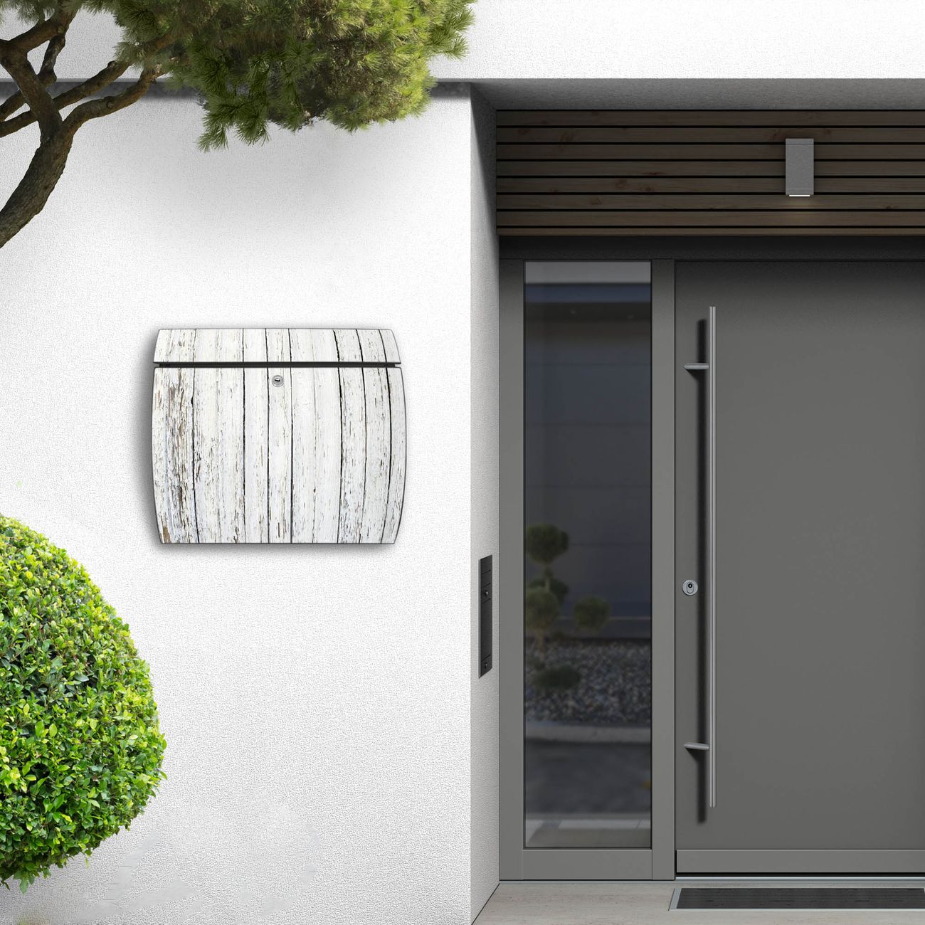FUNKTION: DESIGN: Das Burg Wächter Modell Toscana mit Motiv Weißer Bretterzaun hat ein sehr ansprechendes und zeitloses Design und ist besonderes wetterfest. Heben Sie Sich von der tristen grauen Masse ab, ohne auf Funktionalität zu verzichten. Wir bieten Ihnen ebenfalls Namensschilder, bereits beschriftet oder frei zu beschriften, und verschiedene selbst gestaltete Bitte-Keine-Werbung-Aufkleber. DETAILS: Der Postkasten besteht aus vollflächig verzinktem Stahl welcher in Anthrazit oder Weiß lackiert wurde oder aus Edelstahl (je nach gewählter Variante). Das Motiv besteht aus einer wetter- und UV-festen Folie, die mit einem Schutzlaminat überzogen ist, durch die Ihren Briefkasten zusätzlich vor Kratzern geschützt ist und auf den Briefkasten kaschiert wurde. Sie erhalten zu Ihrem neuen Design Briefkasten 2 Schlüssel sowie das passende Montagematerial. BANJADO: Ihr Briefkasten wird von Burg Wächter in Deutschland gefertigt und in unserer kleinen Manufaktur von Hand veredelt. Die Motivfolie ist lösungsmittelfrei und schutzlaminiert, dies sorgt für einen langen Halt. Wir legen großen Wert auf die Verbindung von Funktionalität und Design. Sie erhalten besondere Handarbeit aus Sachsen und Made in Germany.