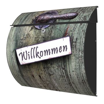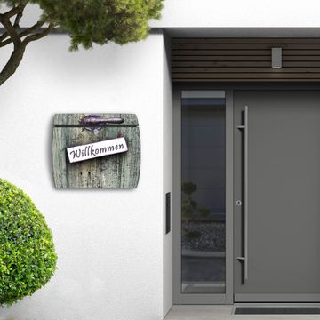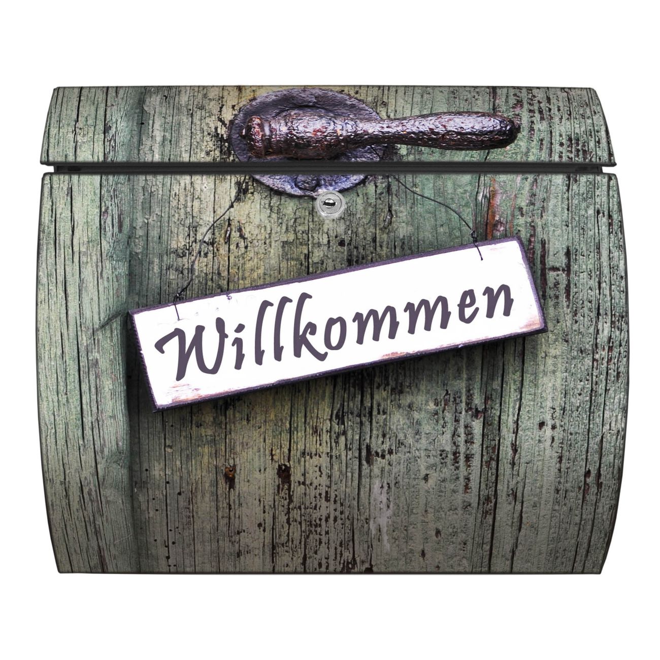 Der geschwungene Burg Wächter Briefkasten Toscana mit Motiv Willkommen bietet Ihnen mit seinem großen Fassungsvermögen genügend Platz auch für große A4 Sendungen. Auf Wunsch können Sie bei uns den passenden Standfuß bestellen und so aus dem Wandbriefkasten einen Standbriefkasten machen. Der integrierte Öffnungsstopp ermöglicht eine einfache Handhabung beim Entnehmen der Post.