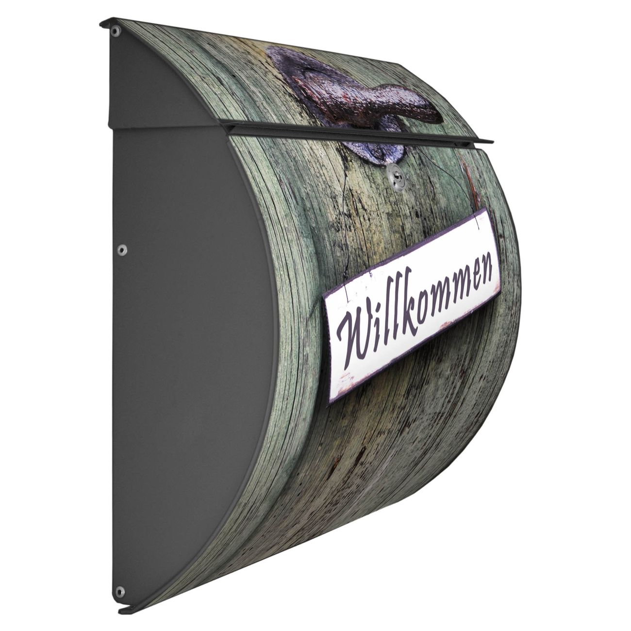 FUNKTION: DESIGN: Das Burg Wächter Modell Toscana mit Motiv Willkommen hat ein sehr ansprechendes und zeitloses Design und ist besonderes wetterfest. Heben Sie Sich von der tristen grauen Masse ab, ohne auf Funktionalität zu verzichten. Wir bieten Ihnen ebenfalls Namensschilder, bereits beschriftet oder frei zu beschriften, und verschiedene selbst gestaltete Bitte-Keine-Werbung-Aufkleber. DETAILS: Der Postkasten besteht aus vollflächig verzinktem Stahl welcher in Anthrazit oder Weiß lackiert wurde oder aus Edelstahl (je nach gewählter Variante). Das Motiv besteht aus einer wetter- und UV-festen Folie, die mit einem Schutzlaminat überzogen ist, durch die Ihren Briefkasten zusätzlich vor Kratzern geschützt ist und auf den Briefkasten kaschiert wurde. Sie erhalten zu Ihrem neuen Design Briefkasten 2 Schlüssel sowie das passende Montagematerial. BANJADO: Ihr Briefkasten wird von Burg Wächter in Deutschland gefertigt und in unserer kleinen Manufaktur von Hand veredelt. Die Motivfolie ist lösungsmittelfrei und schutzlaminiert, dies sorgt für einen langen Halt. Wir legen großen Wert auf die Verbindung von Funktionalität und Design. Sie erhalten besondere Handarbeit aus Sachsen und Made in Germany.