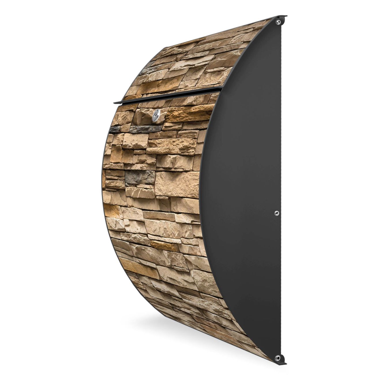FUNKTION: DESIGN: Das Modell Riviera mit Motiv Alte Mauer hat ein sehr ansprechendes und zeitloses Design. Heben Sie Sich von der tristen grauen Masse ab, ohne auf Funktionalität zu verzichten. Der integrierte Öffnungsstopp ermöglicht eine einfache Handhabung beim Entnehmen der Post. DETAILS: Der Postkasten besteht aus vollflächig verzinktem Stahl welcher in Anthrazit lackiert wurde. Das Motiv besteht aus einer wetter- und UV-festen Folie, die mit einem Schutzlaminat überzogen ist, durch die Ihren Briefkasten zusätzlich vor Kratzern geschützt ist. Sie erhalten 2 Schlüssel sowie das passende Montagematerial. NUTZEN: Sie können den Briefkasten sowohl als Wandbriefkasten montieren oder einen passenden Ständer kaufen und als Standbriefkasten einbetonieren. Die Größe bietet genügend Platz für Sendungen aller Art, der Einwurf fasst auch größere A4 Sendungen. BANJADO: Ihr Briefkasten wird in Sachsen in einer kleinen Manufaktur von Hand veredelt. Die Motivfolie ist lösungsmittelfrei und schutzlaminiert, dies sorgt für einen langen Halt. Wir legen großen Wert auf die Verbindung von Funktionalität und Design. Sie erhalten Handarbeit aus Sachsen.