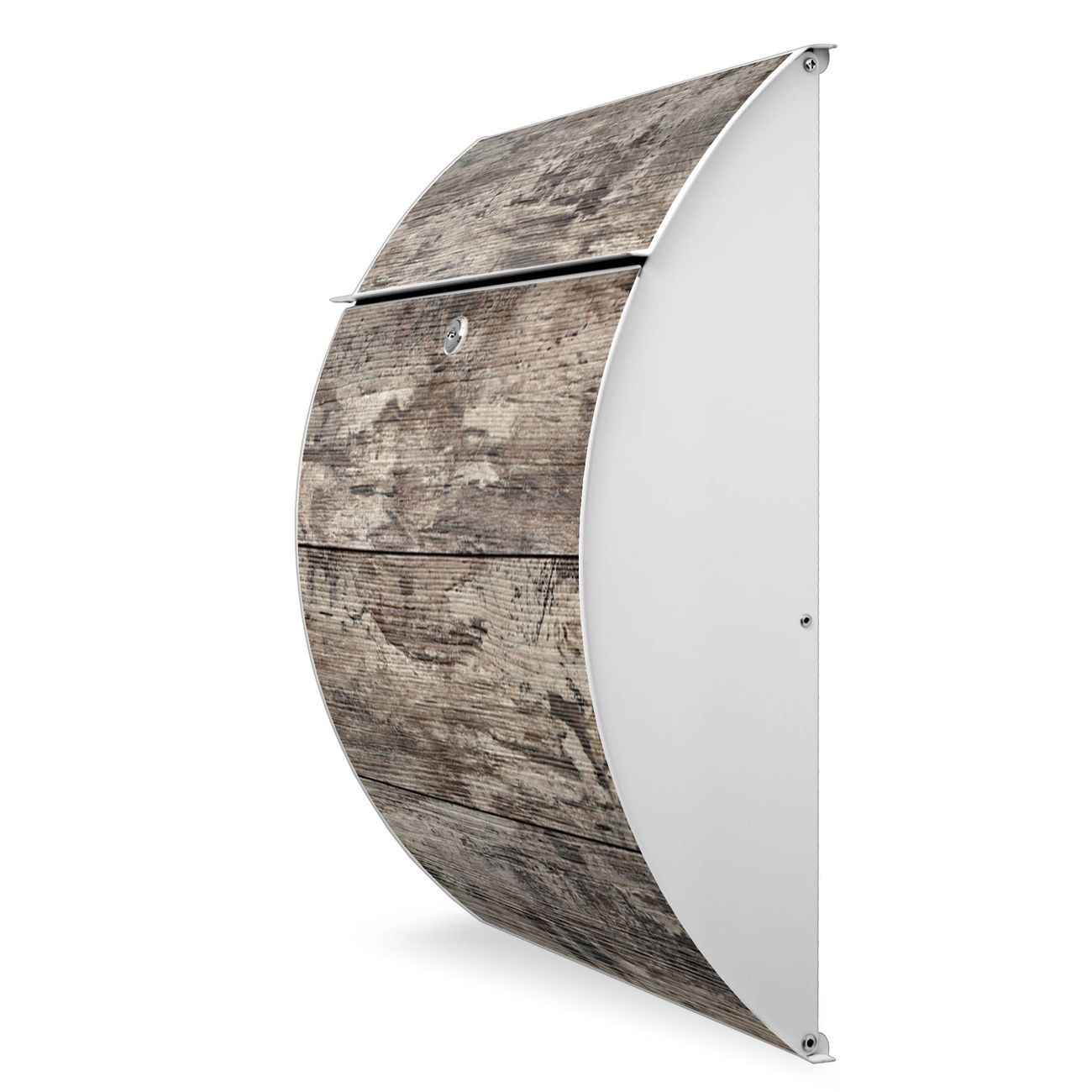 Der weiße Burg Wächter Design Briefkasten mit Motiv Alte Planken bietet Ihnen mit seinem Fassungsvermögen genügend Platz auch für große A4 Sendungen. Auf Wunsch können Sie bei uns auch den passenden Ständer kaufen und so aus dem Wandbriefkasten einen Standbriefkasten machen.